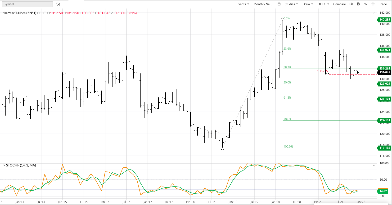 Theoretical Position: If going long the ZN, stops could be placed below the November low of 129-160.