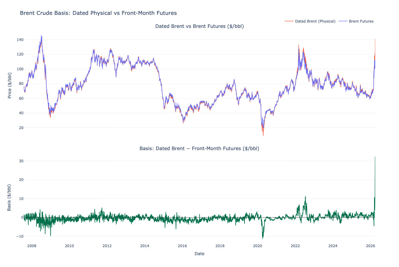After seeing a CNBC article* reporting that the spot price of Dated Brent reached 141.36 shortly after close on Thursday, leaving the basis at over $32/bbl, I was curious to [...]