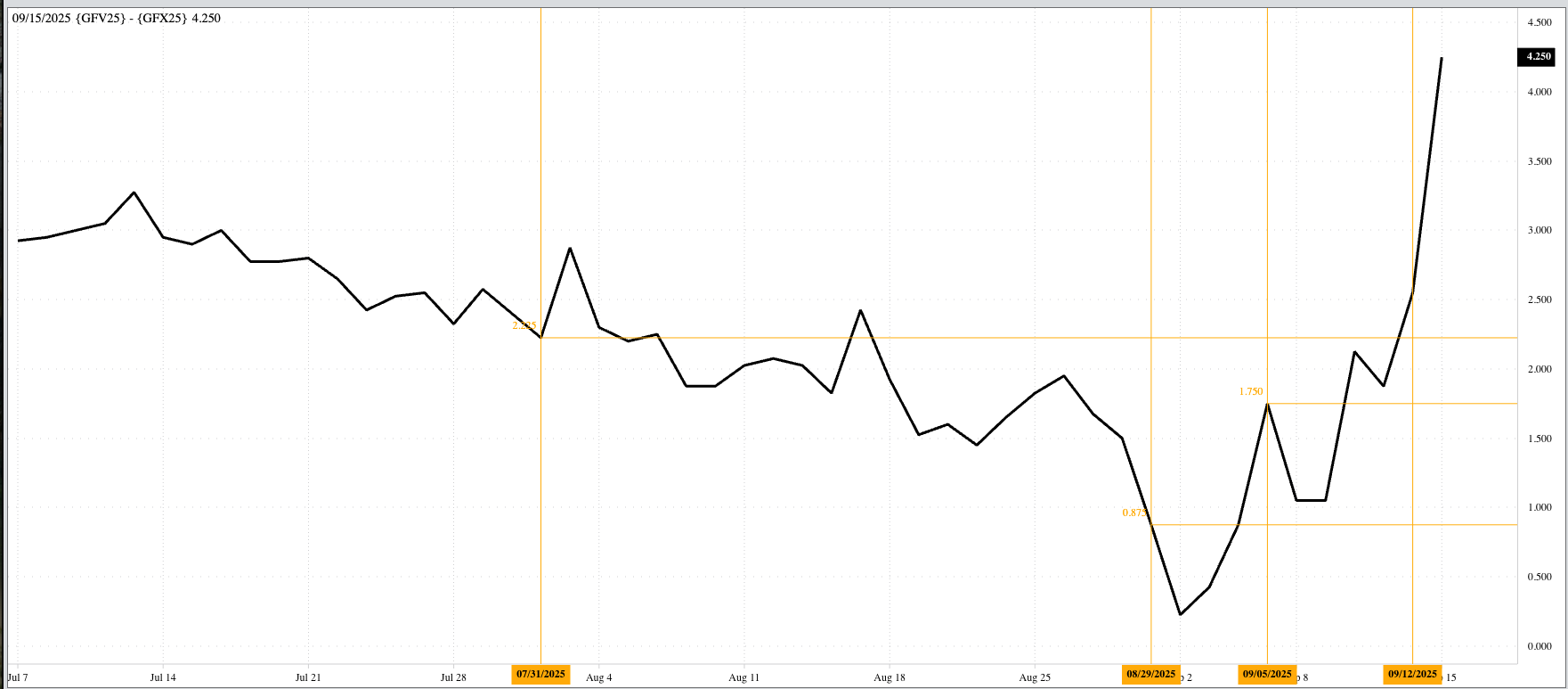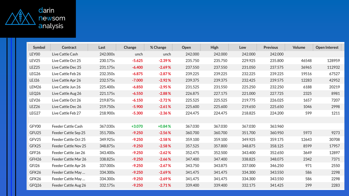 As mentioned in Monday's Afternoon Commentary, the October-November feeder cattle futures spread had an impressive start to the week. After settling last Friday at $2.55, when yesterday's closing bell rang [...]