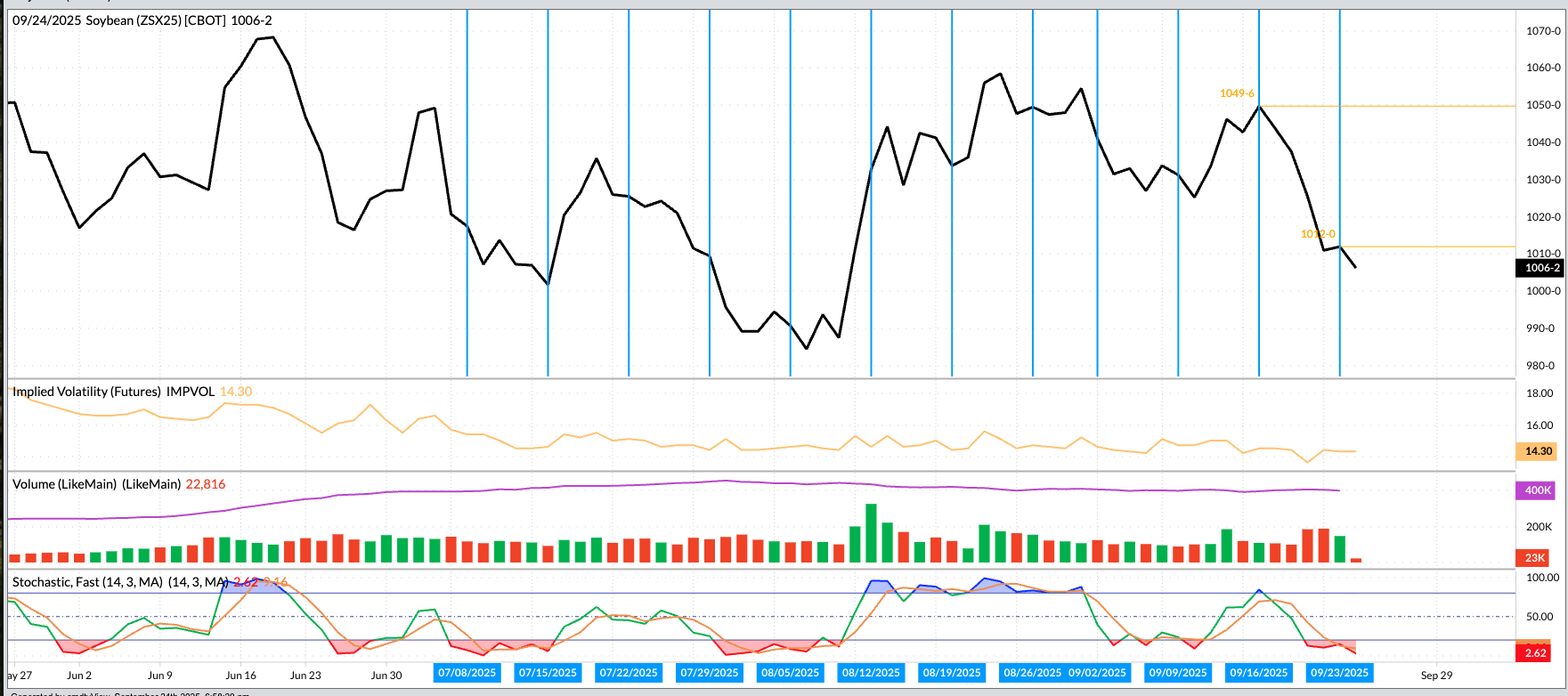 As mentioned in Wednesday's Morning Commentary, the November soybean futures contract looks to be in a minor (short-term) uptrend on its daily chart. This move began with an impressive key [...]