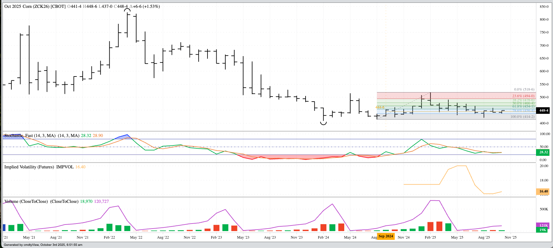As mentioned in Tuesday's Morning Commentary, the Dec25 corn futures contract continues to hold near $4.20. As I said, this makes it 420-friendly. Putting that Dad Joke aside, Dec25's daily [...]