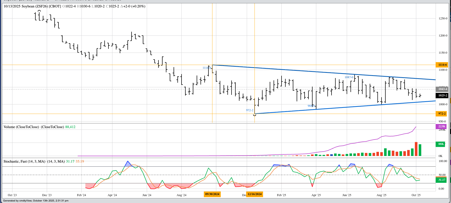 Keeping with the theme of daily close-only charts, let's take a look at November soybeans as we head toward another harvest weekend. Nov25 seems to have settled into a sideways [...]