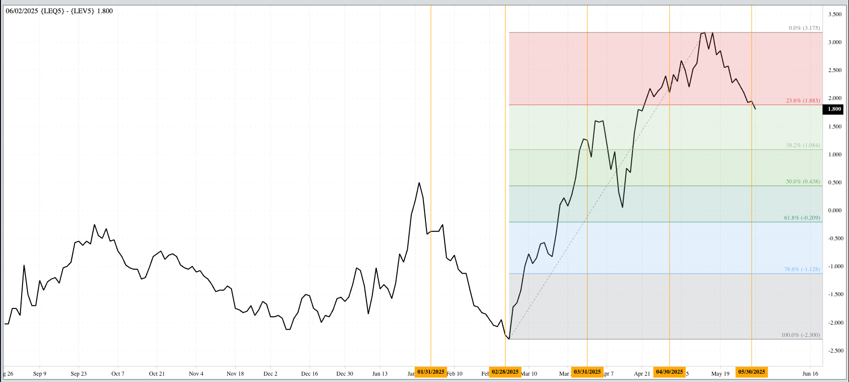 The daily close-only chart for the August-October live cattle futures spread is interesting. After running into resistance just short of $3.20 (May 12, May 13, and May 15), the spread [...]