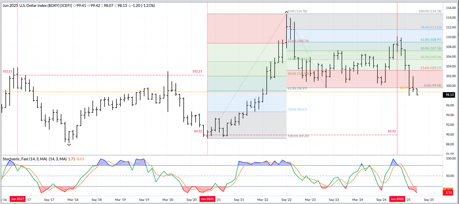 The unraveling of the United States, including the US dollar index, continued overnight as the greenback fell to a low of 96.99 overnight through early Thursday morning. This was still [...]