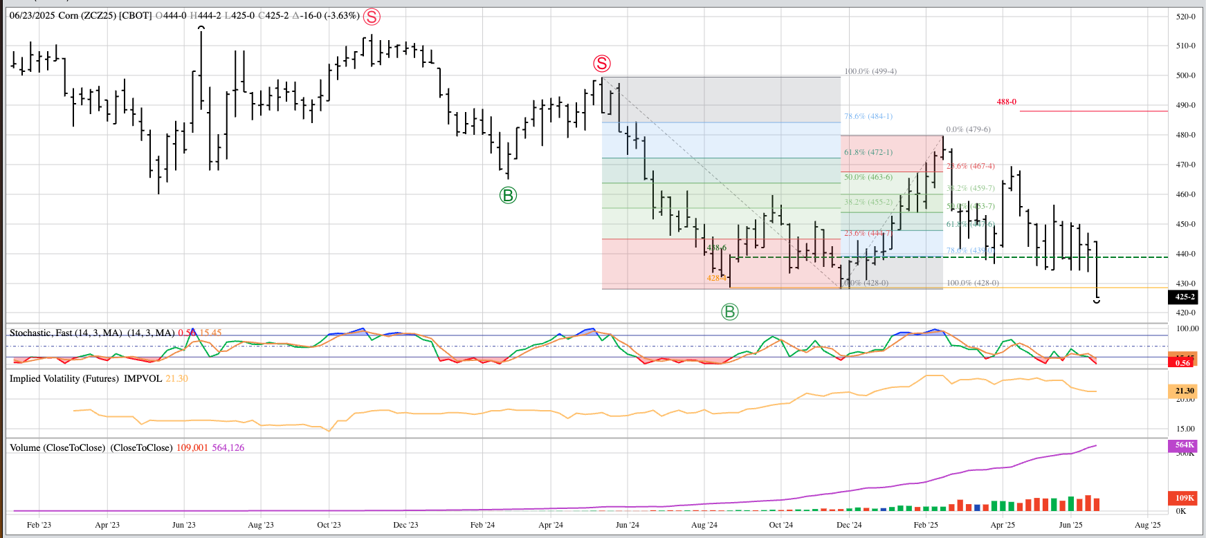 As discussed in Wednesday's Morning Commentary, the December corn contract has broken through to a new low of $4.25 overnight, easily taking out its previous mark of $4.28. Based on [...]