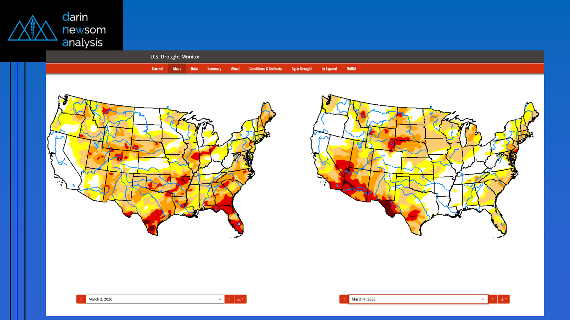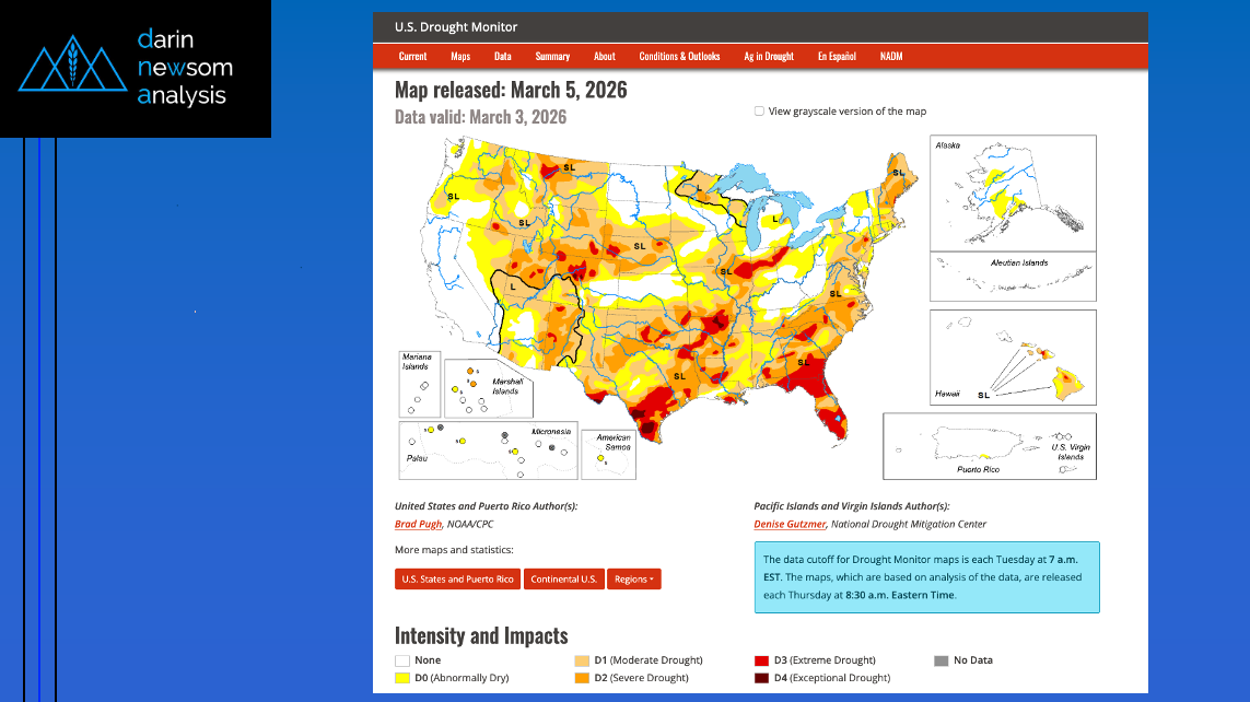 The latest weekly US Drought Monitor update, for the week ending Tuesday, March 3 (slide 1) showed drought readings were generally unchanged over the US Plains and Midwest this past [...]