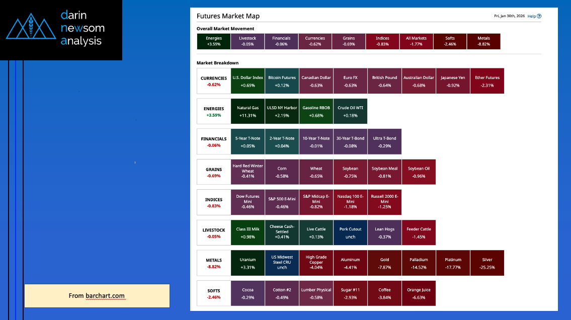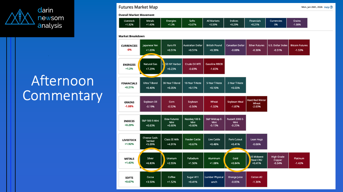 Afternoon Summary: We already knew Winter Storm Fern (Fear the Fern) sparked a buying frenzy reminiscent of Covid, but this mentality went beyond the grocery store to the commodity complex [...]