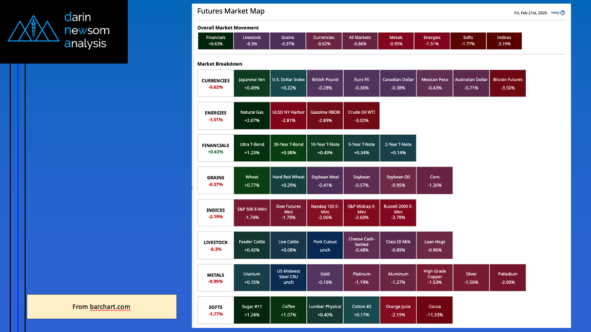 Session Summary: I had to rearrange the images I normally attach to Afternoon Commentary. After looking at Friday afternoon’s Barchart Futures Market Heat Map, I couldn’t leave it on the [...]