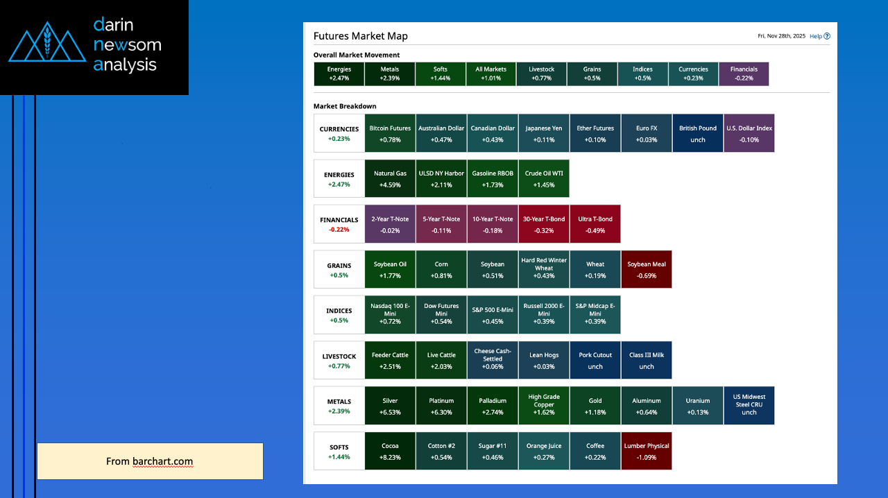 Afternoon Summary: As I did Wednesday in this space, let’s start Thursday’s Afternoon Commentary by recapping the latest Barchart Futures Market Heat map. Similar to yesterday, there is again only [...]
