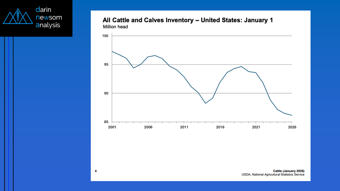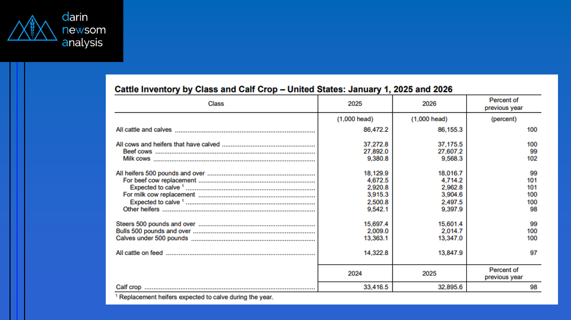 The January 1 Cattle Inventory numbers from NASS was released Friday afternoon. To the surprise of nobody, the all cattle and calves number of 86.2 million head (mh) was down [...]