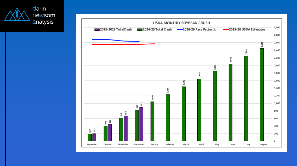 The December 2025 Oilseed Crushings report from USDA/NASS was released on Monday, February 2. 230 mb of soybeans were reportedly crushed during December 2025 as compared to 221 mb during [...]