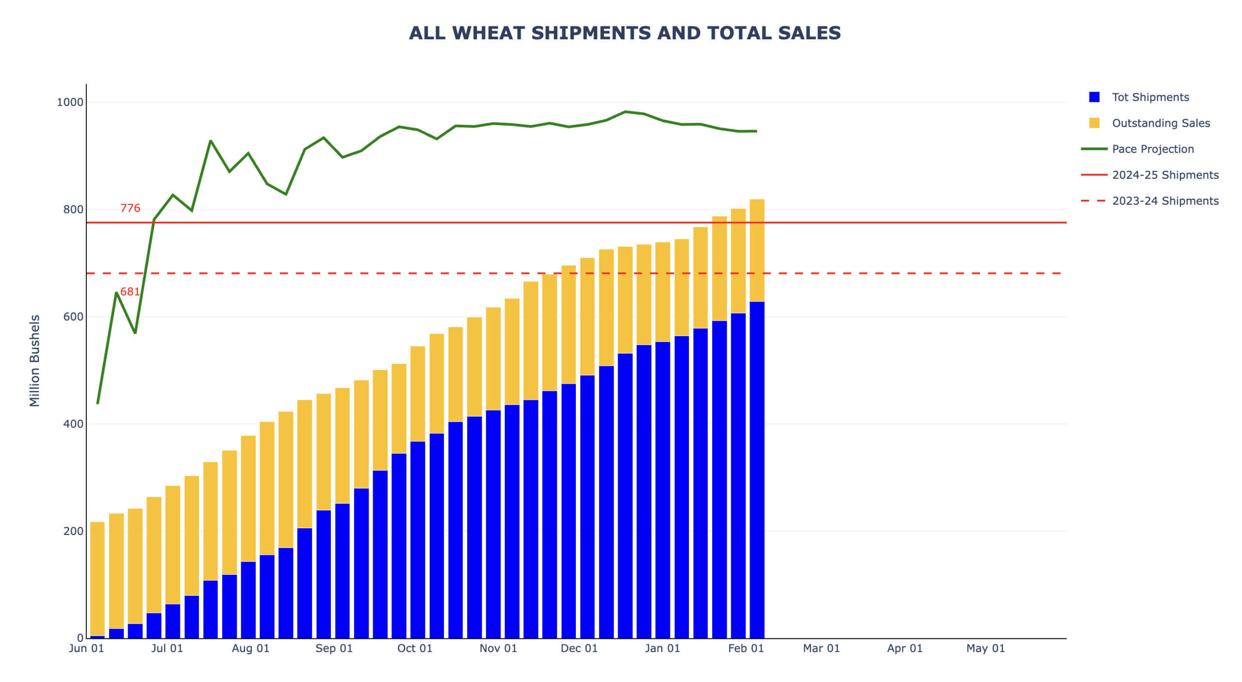 The latest weekly export sales and shipment update showed 2025-2026 marketing year export shipments of all U.S. Wheat at 628 mb (blue column) through Thursday, February 05, a point in [...]