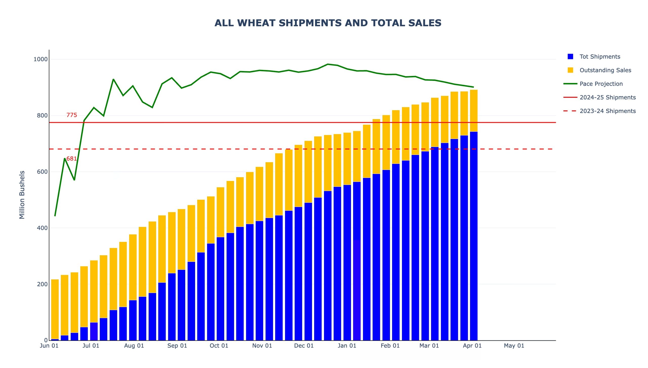 The latest weekly export sales and shipment update showed 2025-2026 marketing year export shipments of all U.S. Wheat at 755 mb (blue column) through Thursday, April 09, a point in [...]