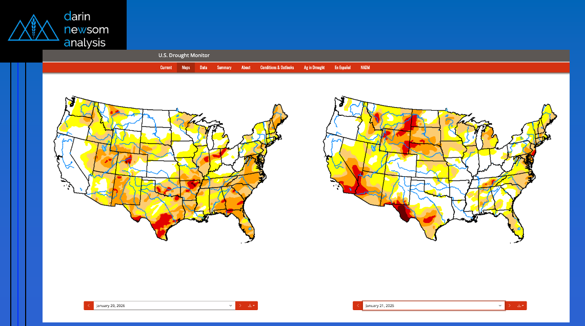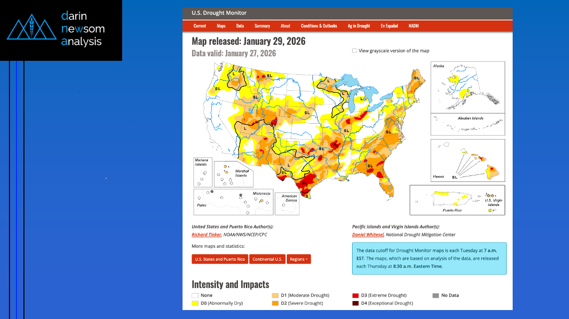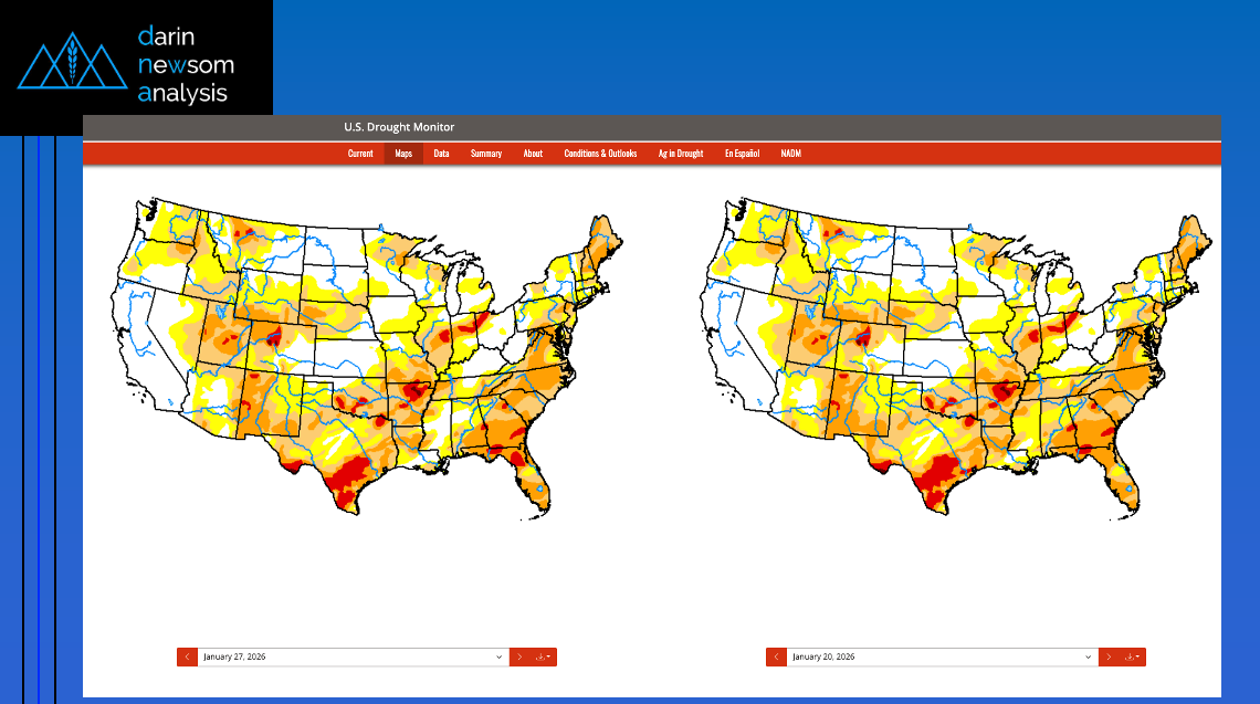 The latest weekly US Drought Monitor update, for the week ending Tuesday, January 27 (slide 1) showed drought readings didn’t change much over much of the US Plains and Midwest [...]