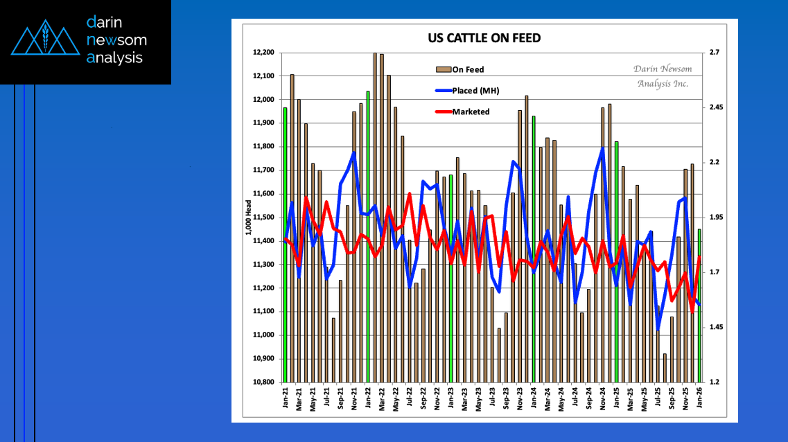 USDA released its Cattle on Feed numbers for January 1, 2026 Friday afternoon. On Feed as of January 1: 11.45 million head (mh) Down 2% from the December 1 number [...]