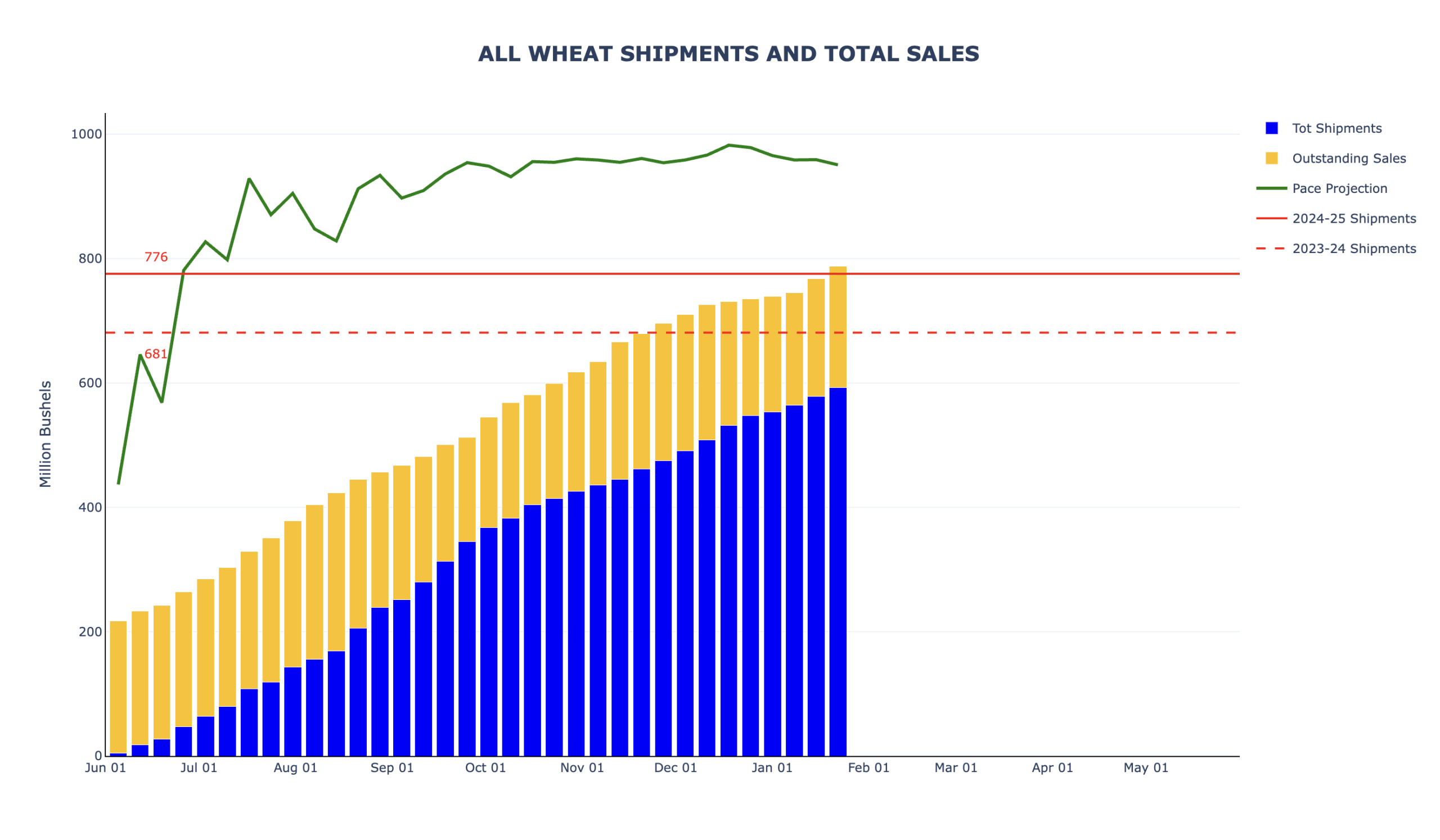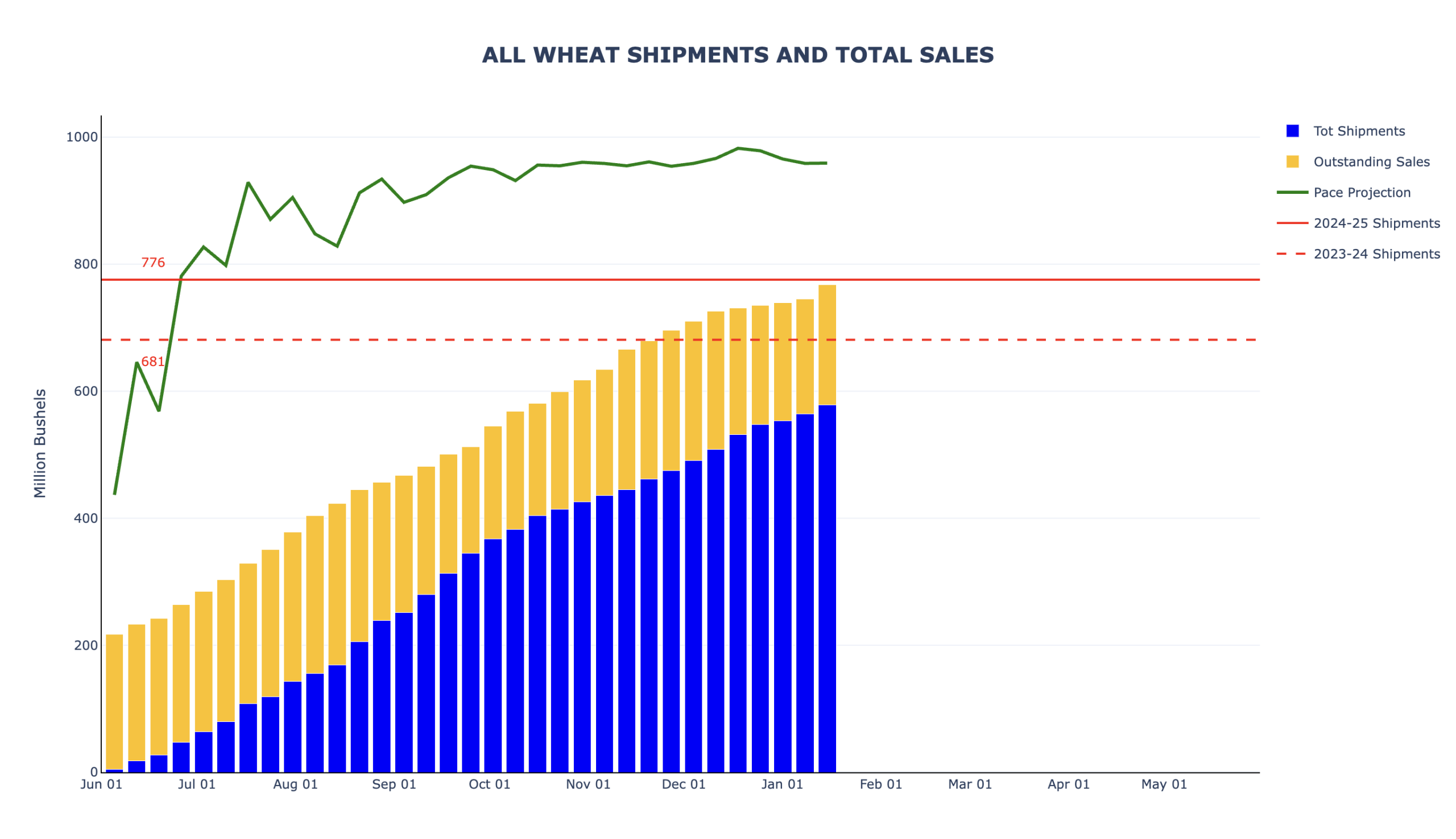 The latest weekly export sales and shipment update showed 2025-2026 marketing year export shipments of all U.S. Wheat at 578 mb (blue column) through Thursday, January 15, a point in [...]