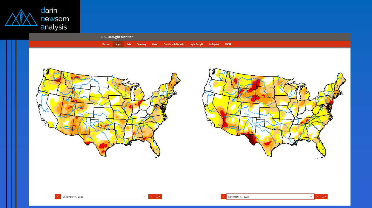 The latest weekly US Drought Monitor update, for the week ending Tuesday, December 16 (slide 1) showed drought readings were little changed from the previous week (slide 2) That being [...]