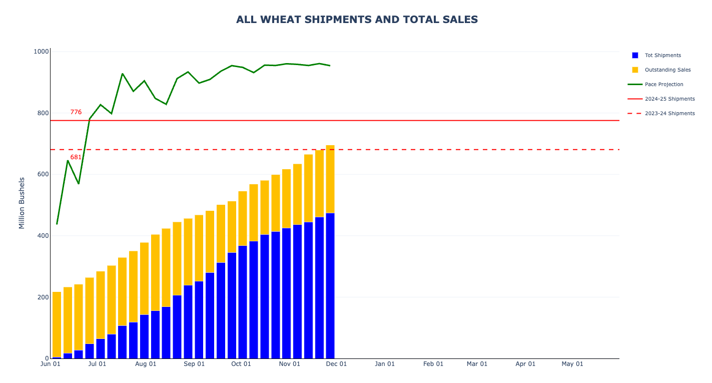 The latest weekly export sales and shipment update showed 2025-2026 marketing year export shipments of all U.S. wheat at 475 mb (blue column) through Thursday, November 27, a point in [...]
