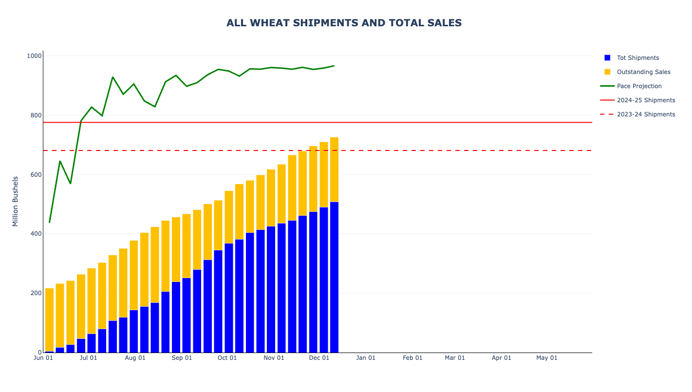 The latest weekly export sales and shipment update showed 2025-2026 marketing year export shipments of all U.S. Wheat at 508 mb (blue column) through Thursday, December 11, a point in [...]