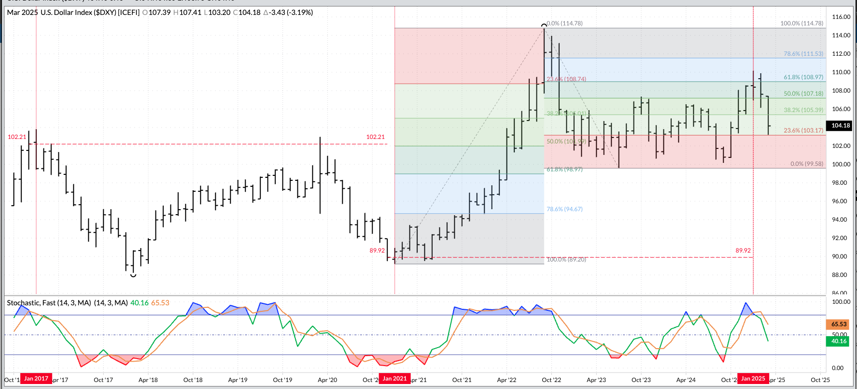 The US dollar index ($DXY): There continues to be no consistent trend with the US dollar index as it closed February at 104.21, down 3.40 for the month. This was [...]
