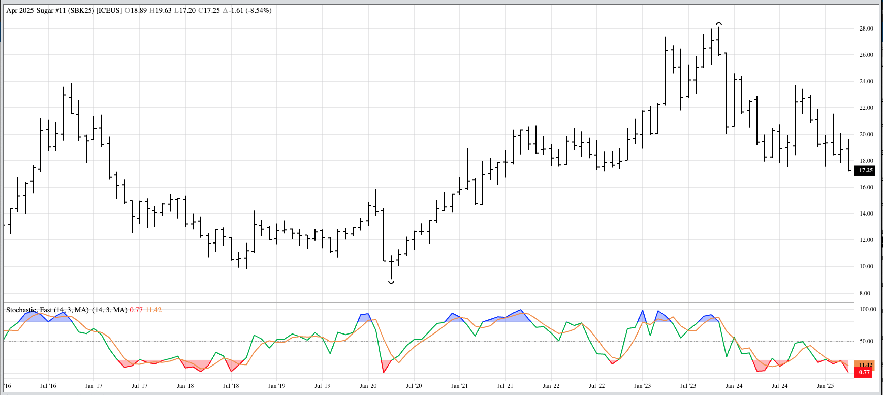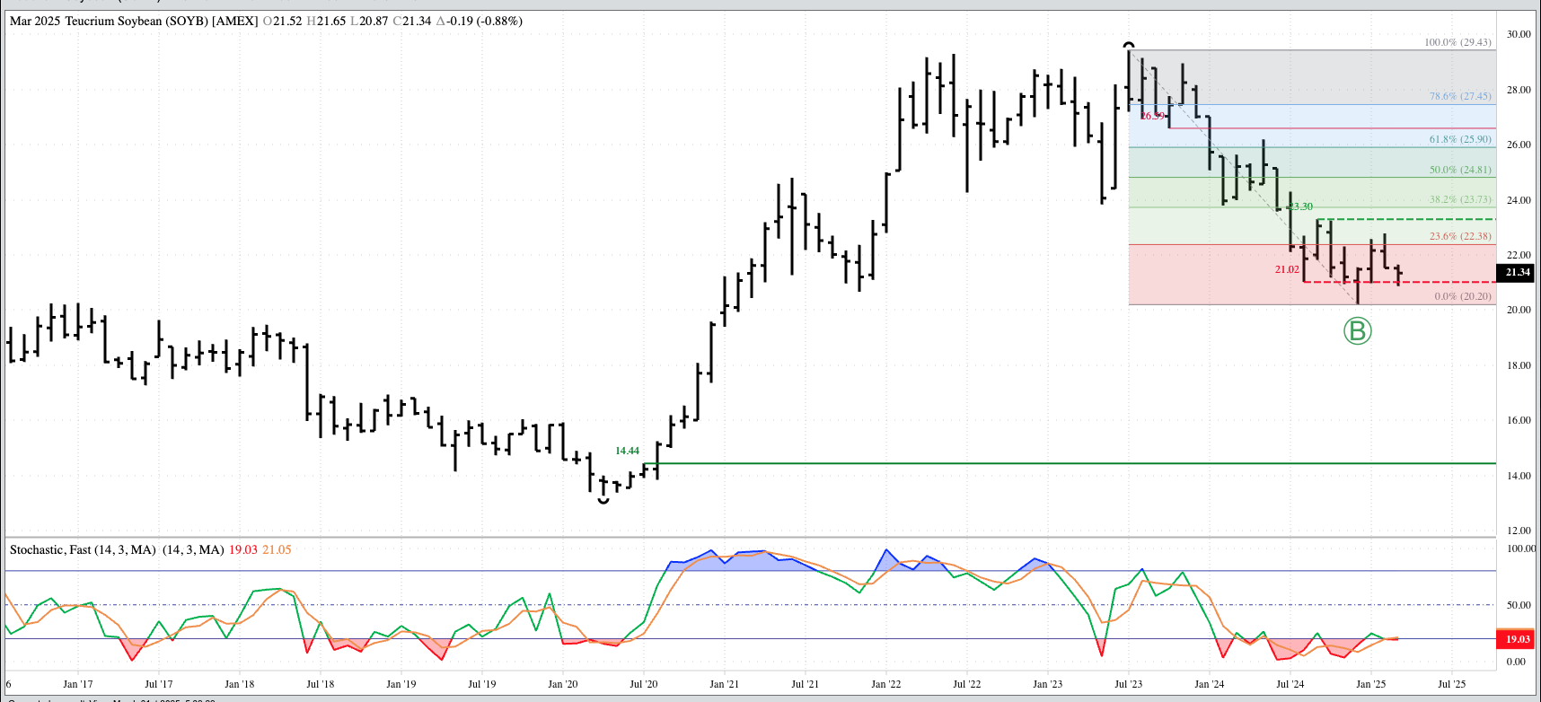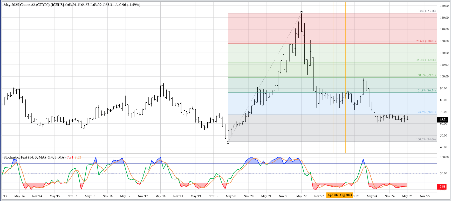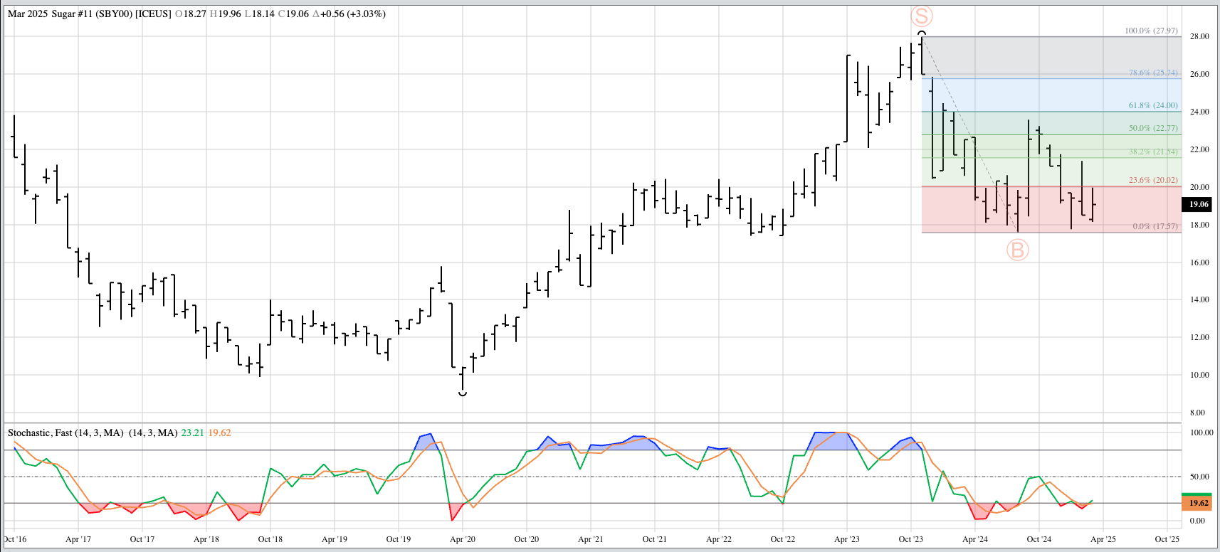 Cotton (CTY00, Cash Index): Despite the Index posting a bullish spike during March, I'm going to call the major (long-term) trend sideways between 61.07 (July 2024) and 67.93 (November 2024). [...]