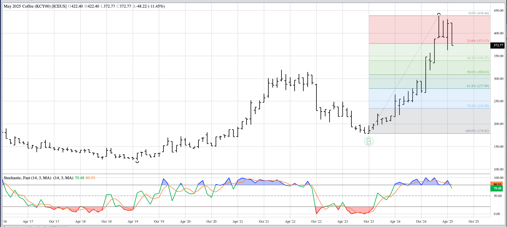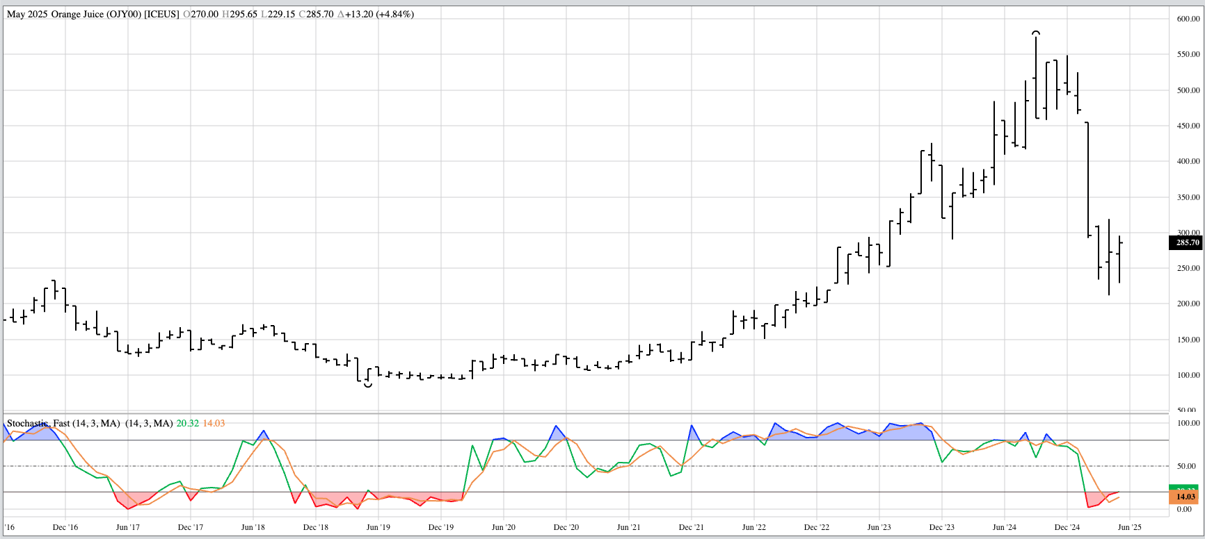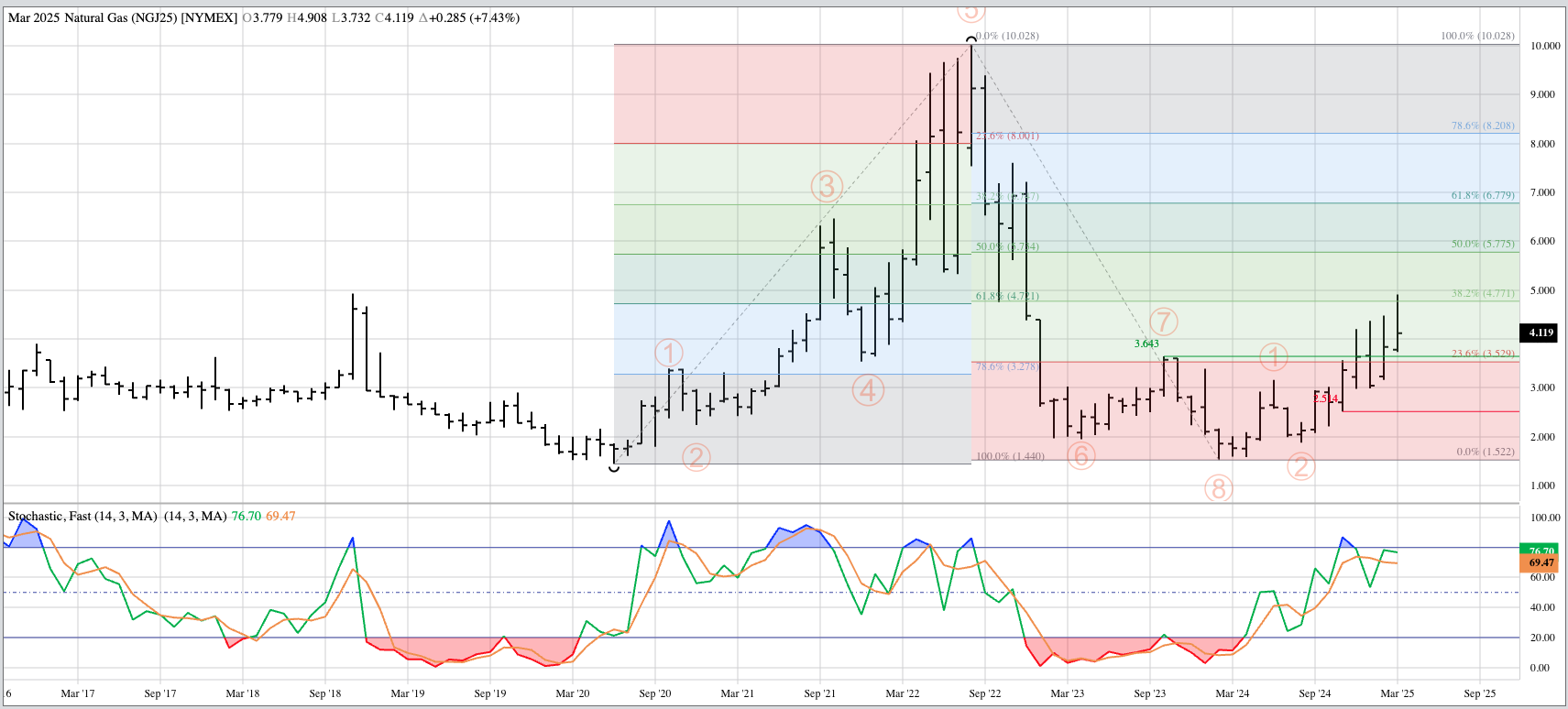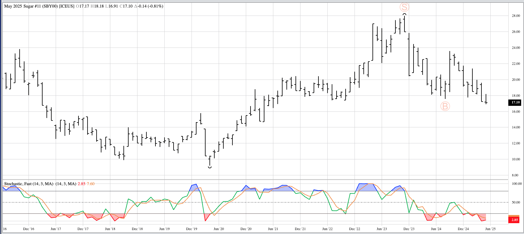 Cotton (CTY00, Cash Index): Despite the Index posting a bullish spike during March, I'm going to call the major (long-term) trend sideways between 61.07 (July 2024) and 67.93 (November 2024). [...]