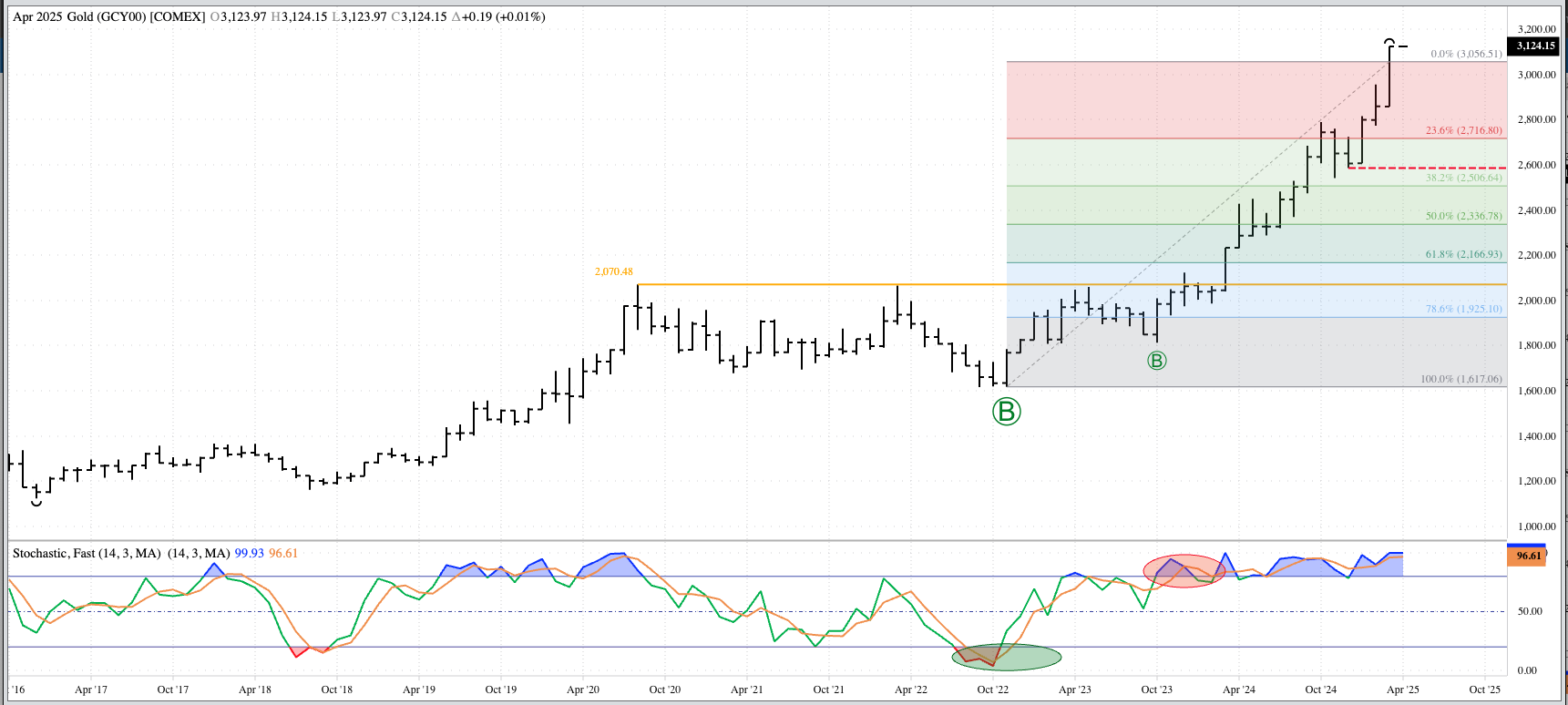 Gold (Cash Index): The cash index (GCY00) extended its major (long-term) uptrend to a new all-time high of $3,124.93 before closing February at $3,123.96, up $265.48 for the month. Given [...]