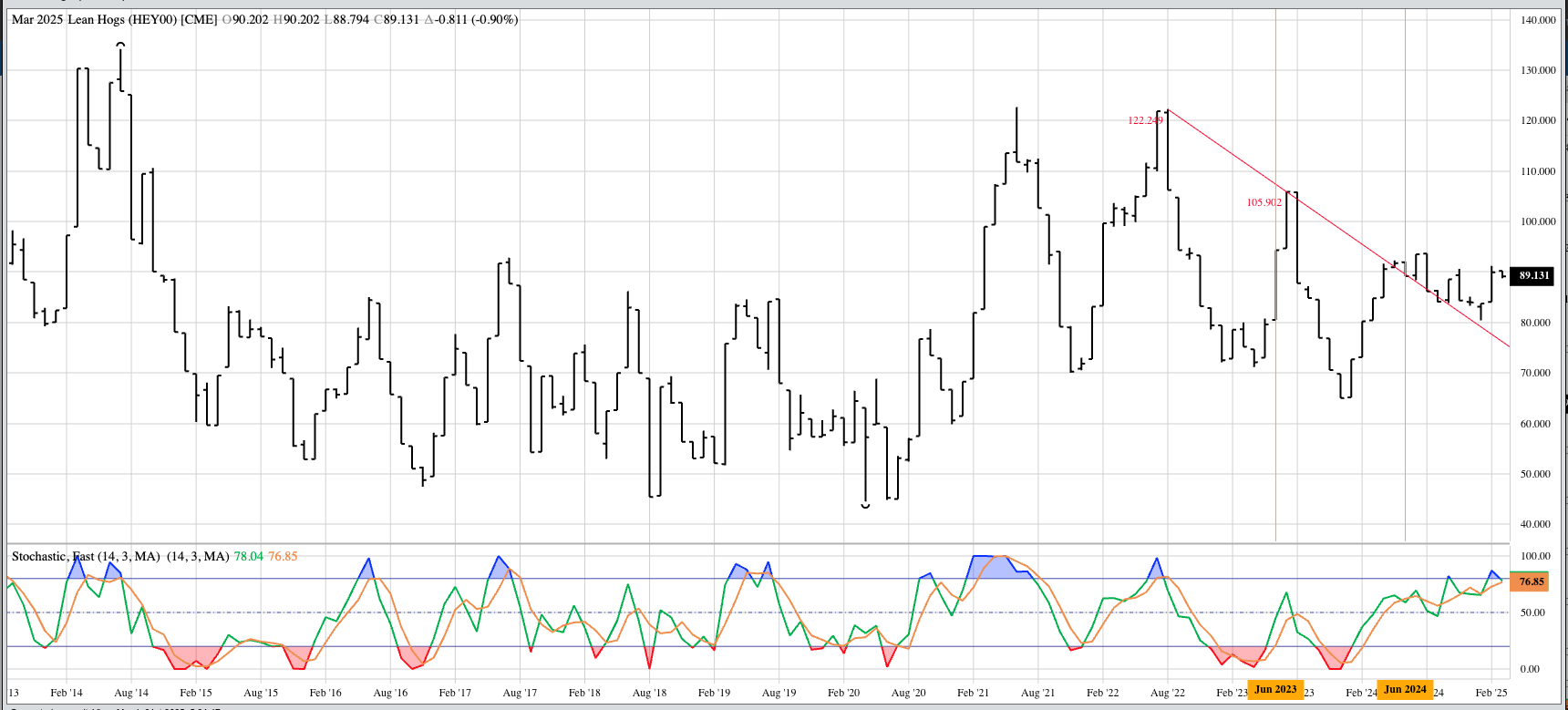 Side Note: I will be taking a look at month-end futures spreads in the three major livestock markets in Supply and Demand Commentary. Live Cattle (Nearby futures): The futures market [...]