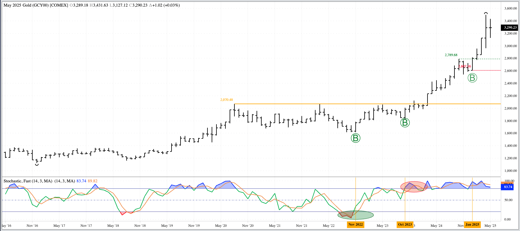 Gold (Cash Index): The cash index (GCY00) consolidated during May but remains in a major (long-term) uptrend. The Index closed at $3,290.23, up $1.02 for the month. Theoretical Positions: It’s [...]