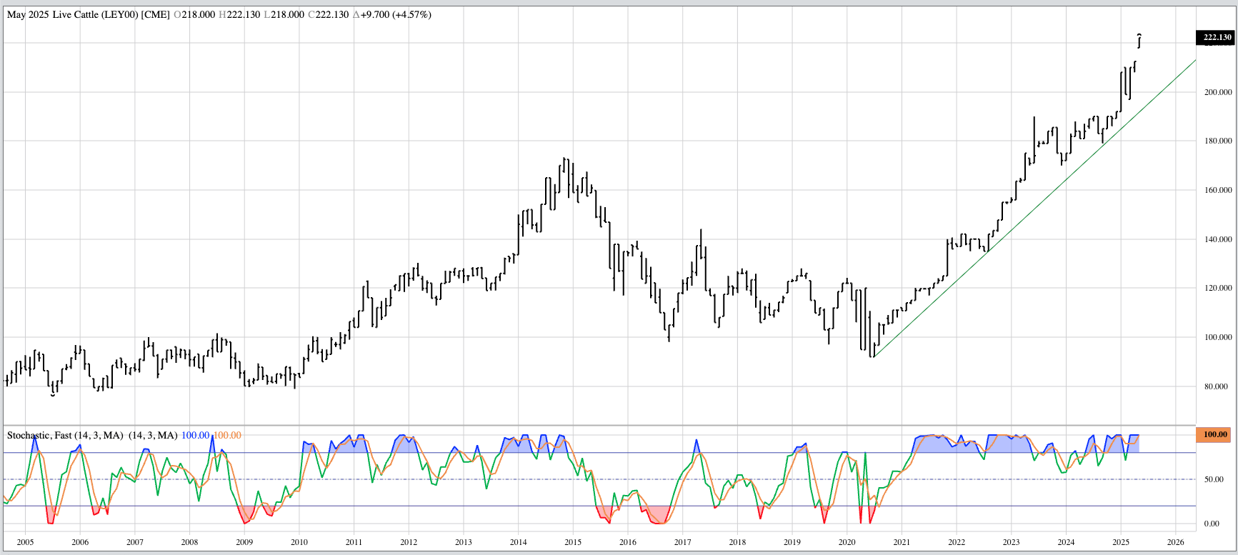 Live Cattle (Cash Index): The futures market extended its major (long-term) uptrend to a high of $221.13 during May. Fundamentally, the market remains bullish, according to futures spreads. Theoretical Positions: [...]