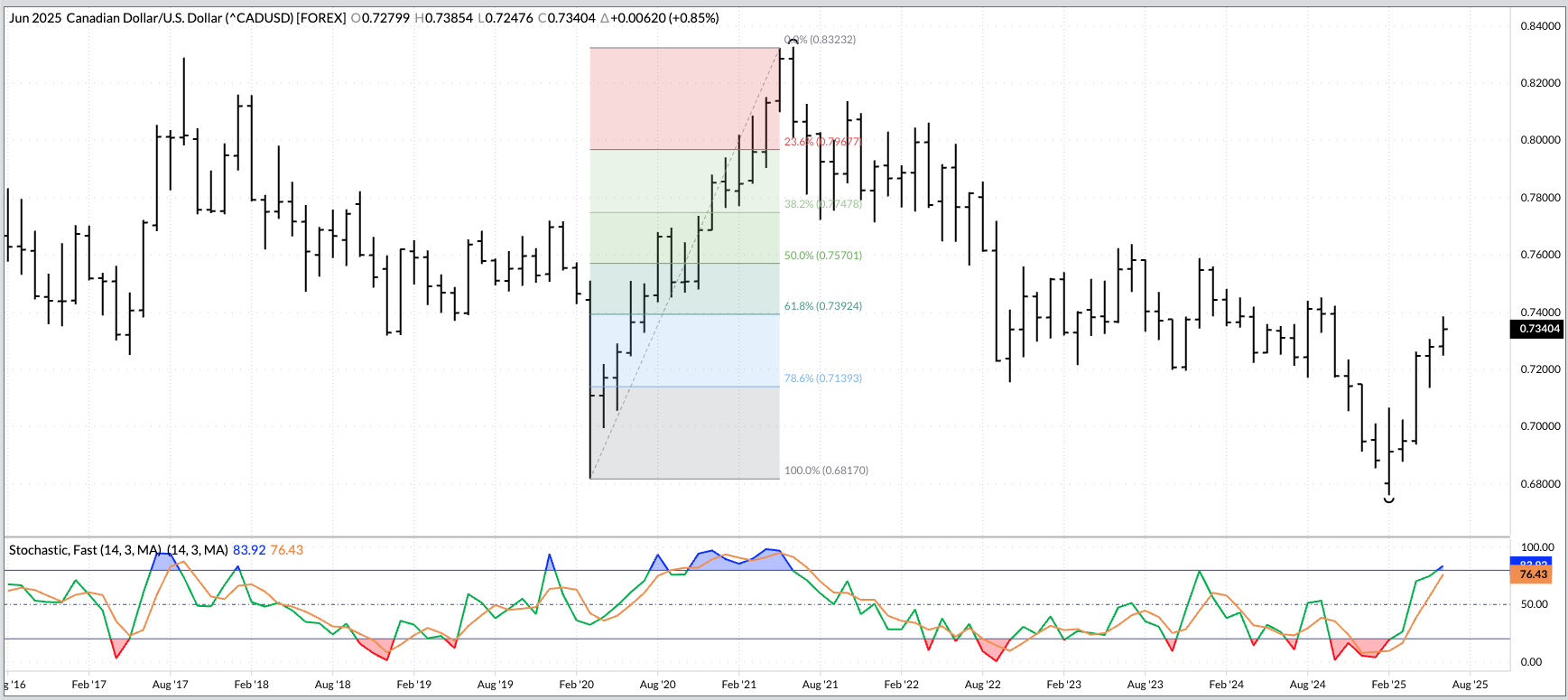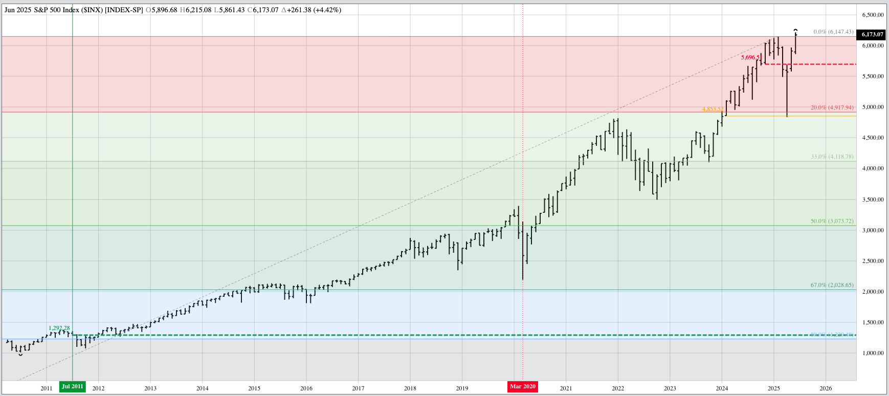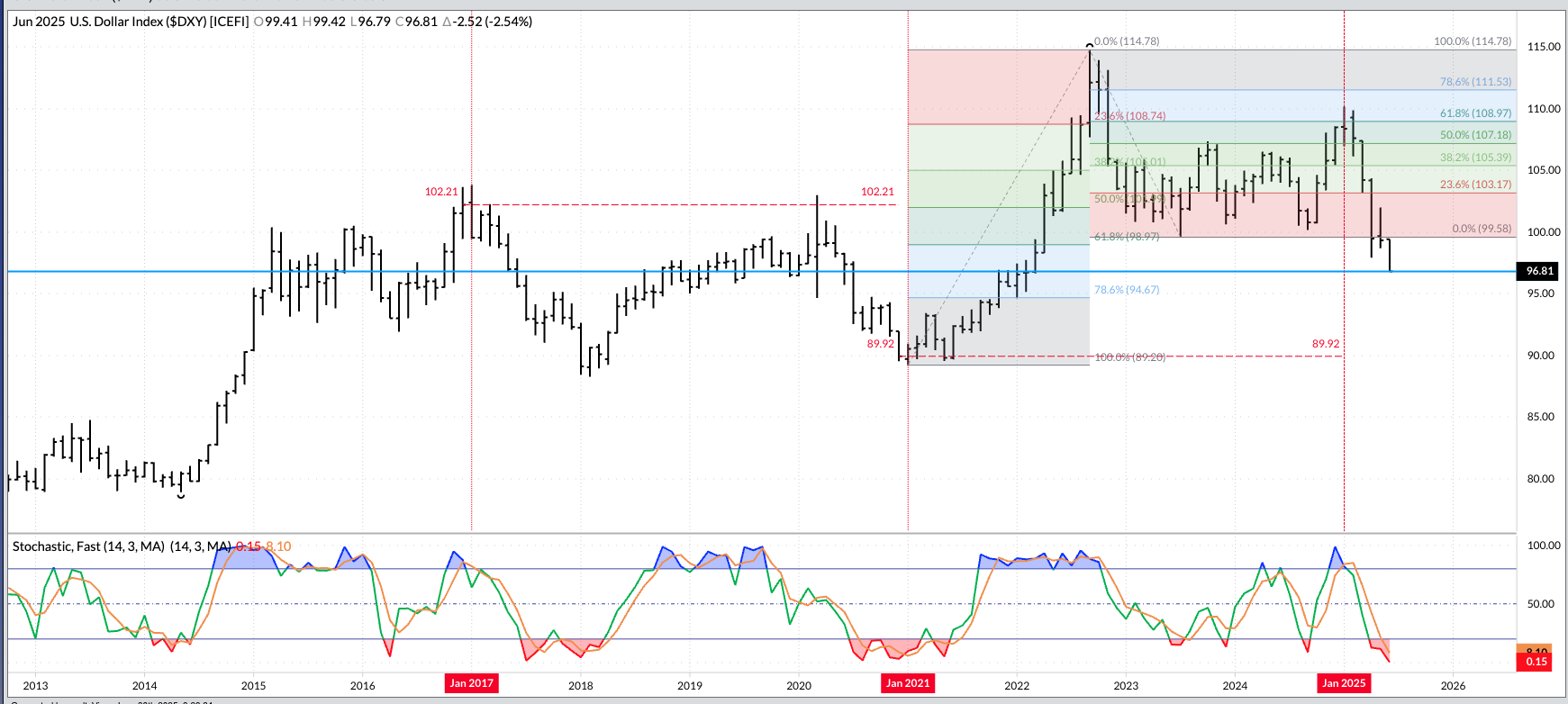 The US dollar index ($DXY): The US dollar index extended its major (long-term) downtrend during June, falling to a low of 96.75 before closing at 96.88, down 2.45 for the [...]