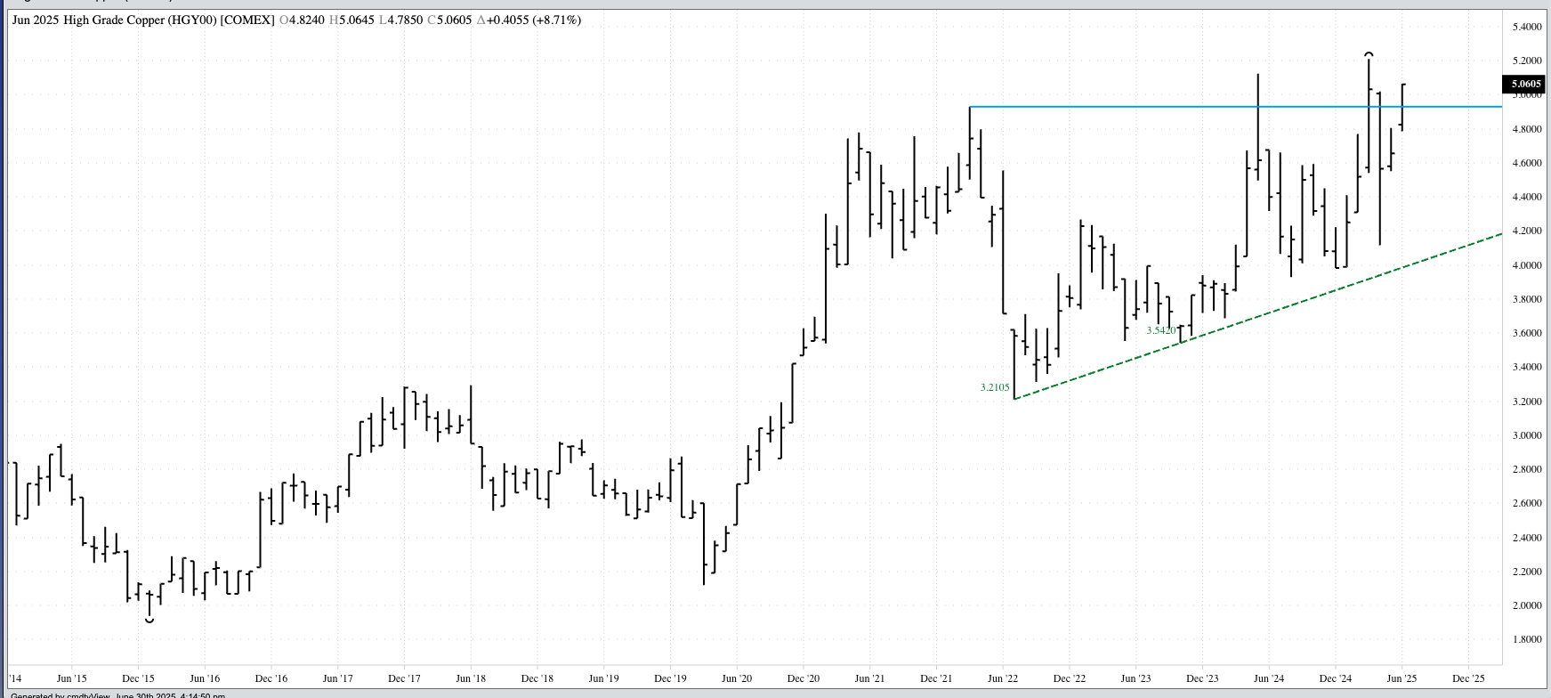 Gold (Cash Index): The cash index (GCY00) continued to consolidate during June but remains in a major (long-term) uptrend. The Index closed at $3,303.08, up $12.85 for the month. Theoretical [...]