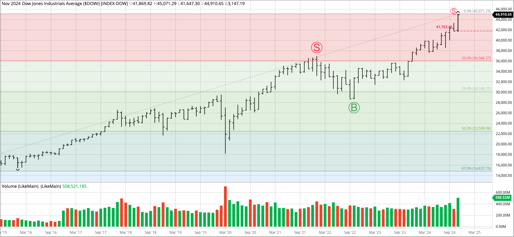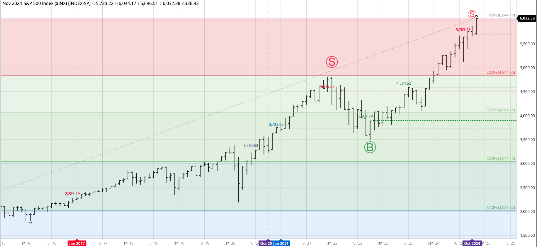 The S&P 500 ($INX) resumed its previous major (long-term) uptrend during November, posting a new all-time high of 6,044.71 before closing at 6,032.38, up 326.93 for the month. Technically, this [...]