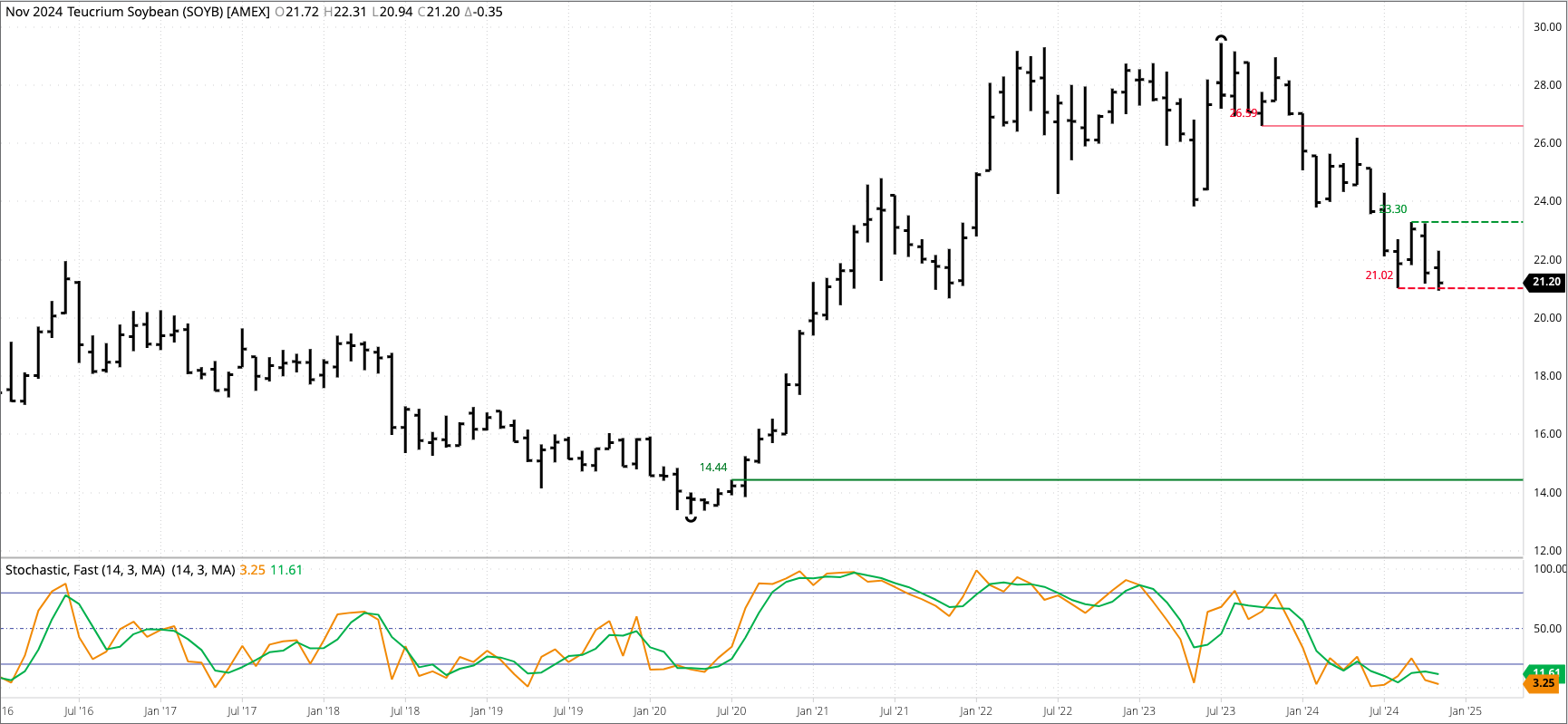The Teucrium Soybean Fund (SOYB) remains in a major (long-term) downtrend, posting a new low of $20.94 during November before closing at $21.20, down $0.35 for the month. Theoretical Positions: Investors [...]