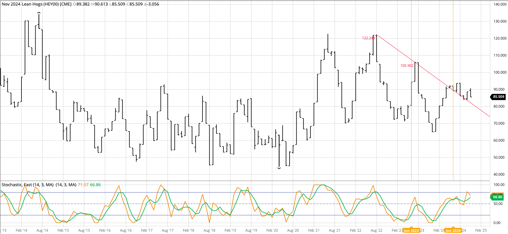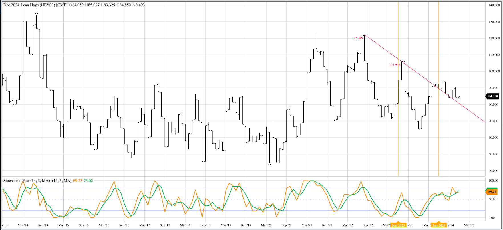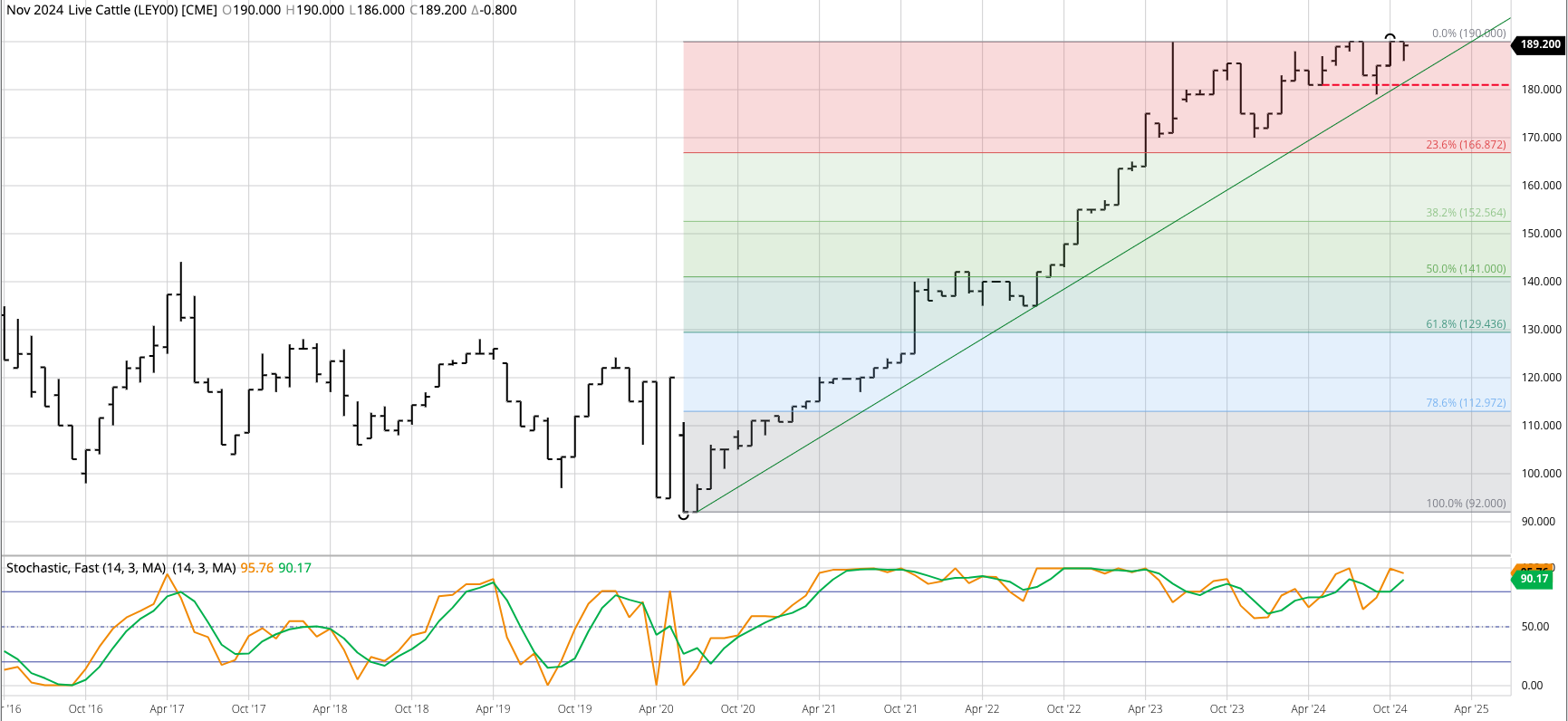 Live Cattle (Cash Index): The live cattle cash index confirmed a major (long-term) downtrend after posting a new 4-month low below $181 during September. This confirmed the double-top pattern at [...]