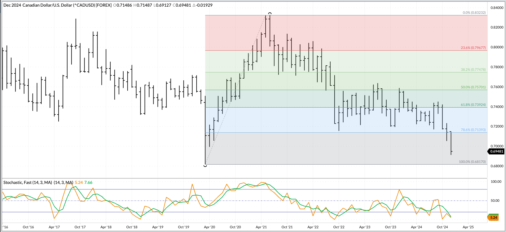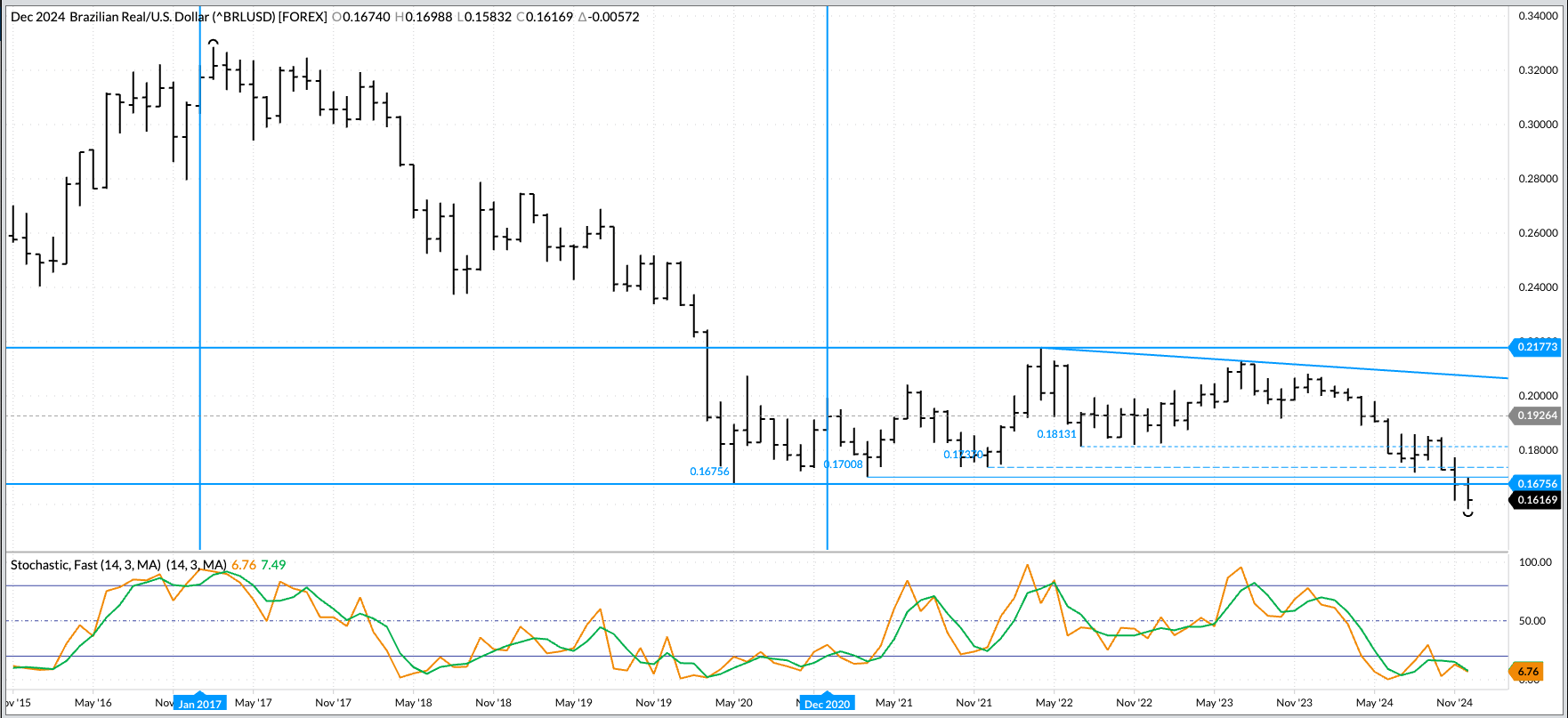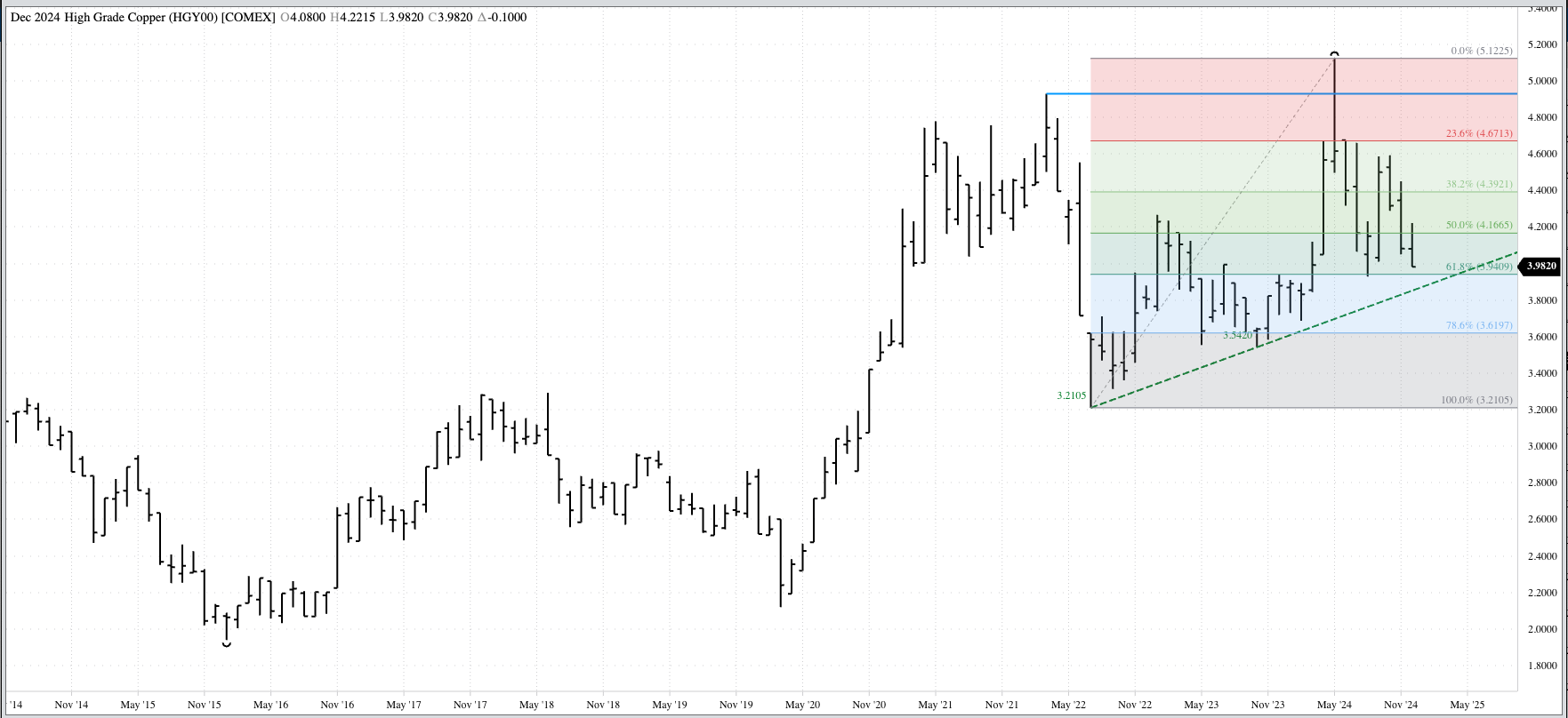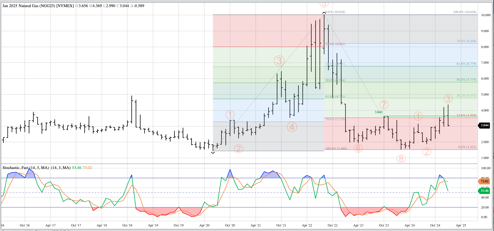 Gold (Cash Index): The cash index (GCY00) remains in a major (long-term) uptrend despite a lower monthly close for November. The Index settled at 2,650.63, down $93.34 for the month [...]