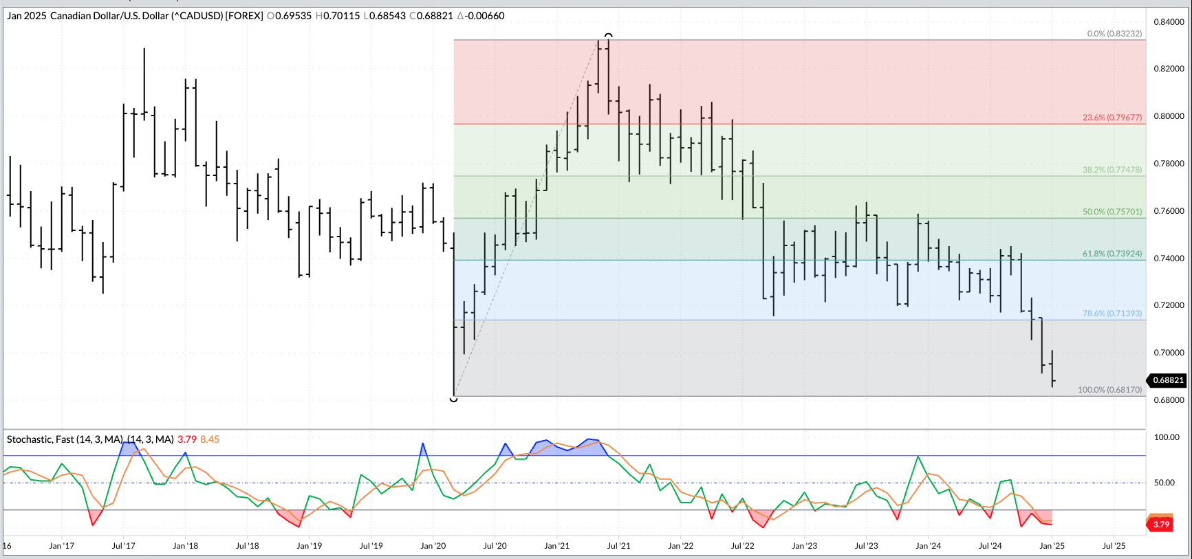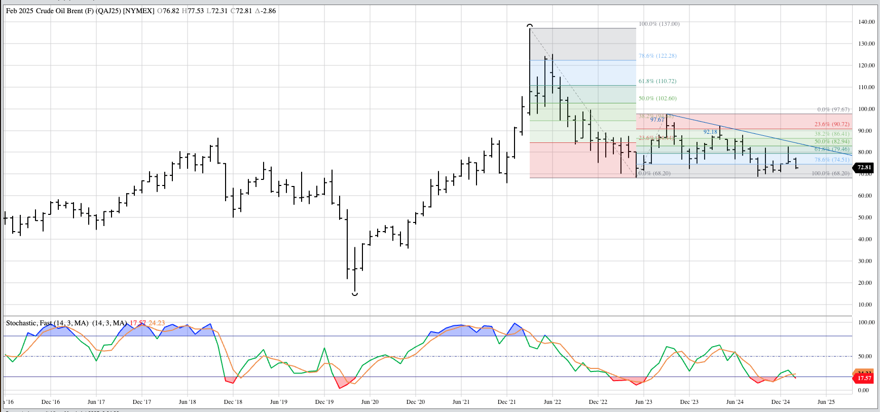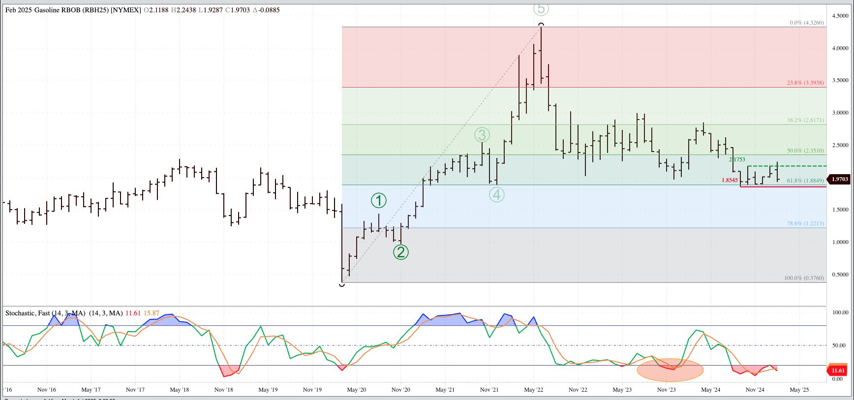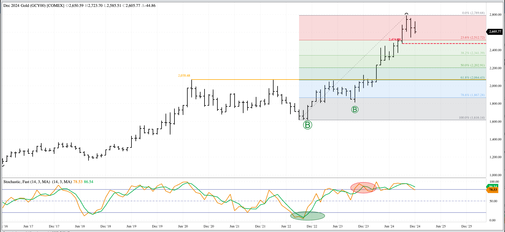 Gold (Cash Index): The cash index (GCY00) looks to be in a major (long-term) sideways trend between its previous 4-month low of $2,474.08 (September 2024) and 4-month high of $2,789.68 [...]