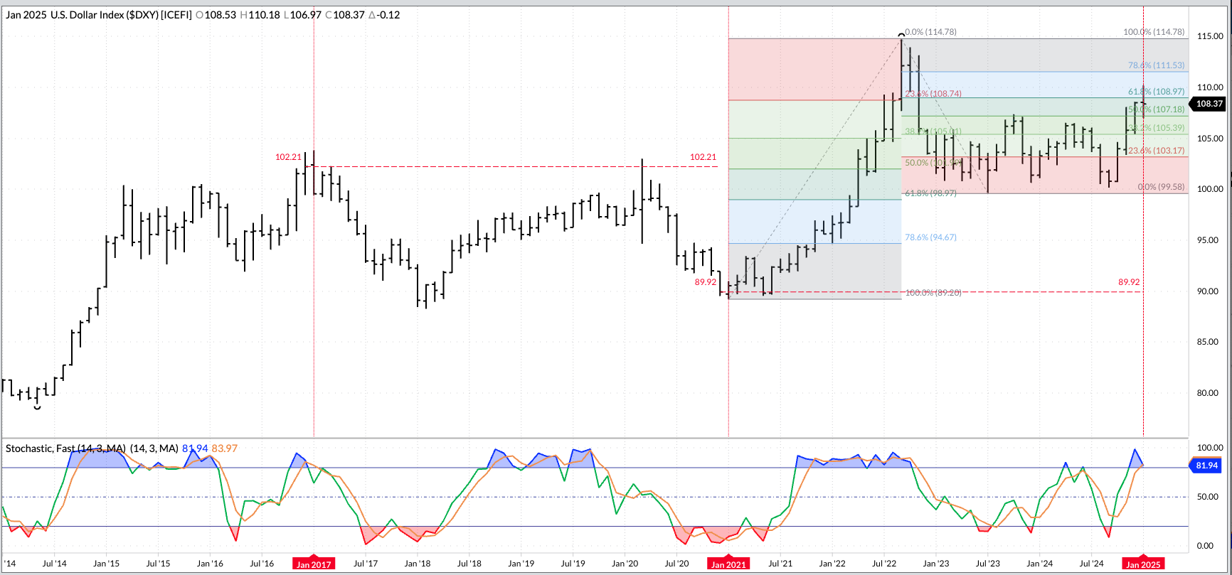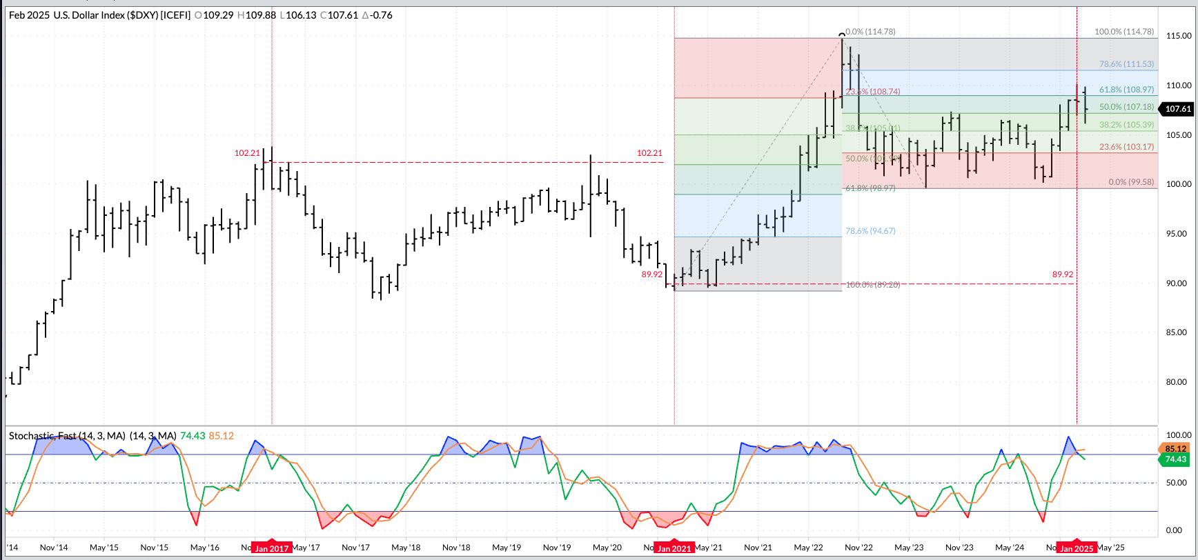 The US dollar index ($DXY): The $DXY extended its major (long-term) uptrend to a high of 110.18, its highest level since November 2022. However, the $DXY closed January at 108.37, [...]