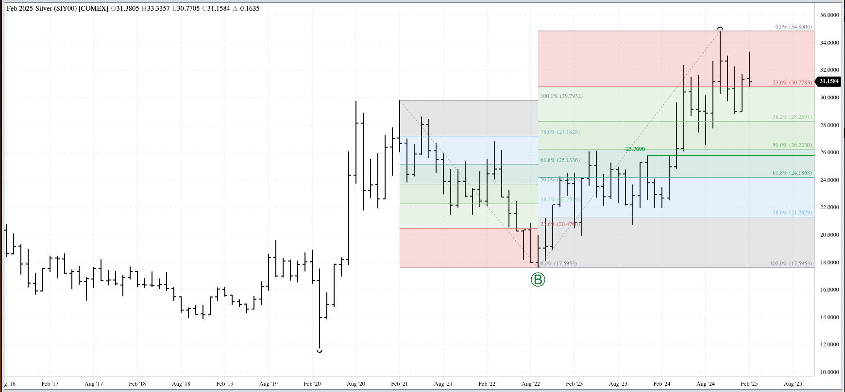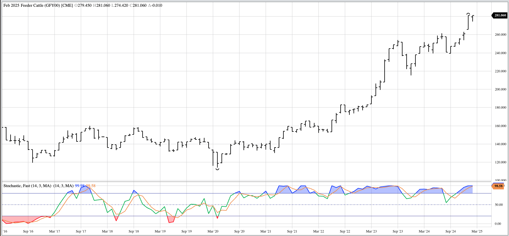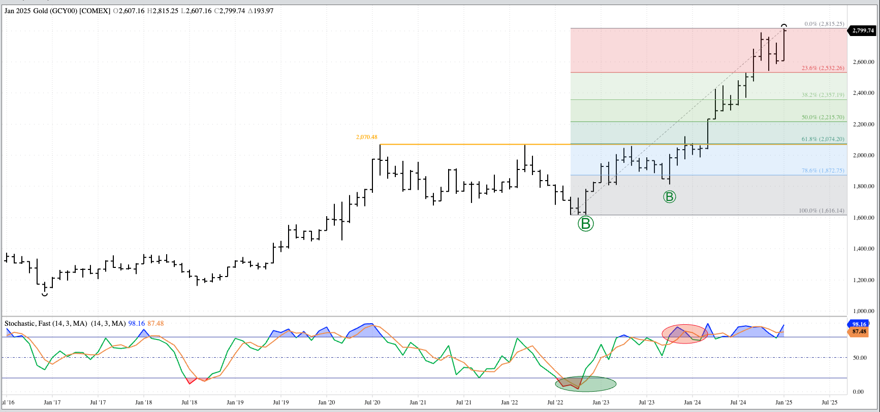 Gold (Cash Index): The cash index (GCY00) extended its major (long-term) uptrend to a new all-time high of $2,815.25 before closing January at $2,799.74, up $193.97 for the month. Given [...]