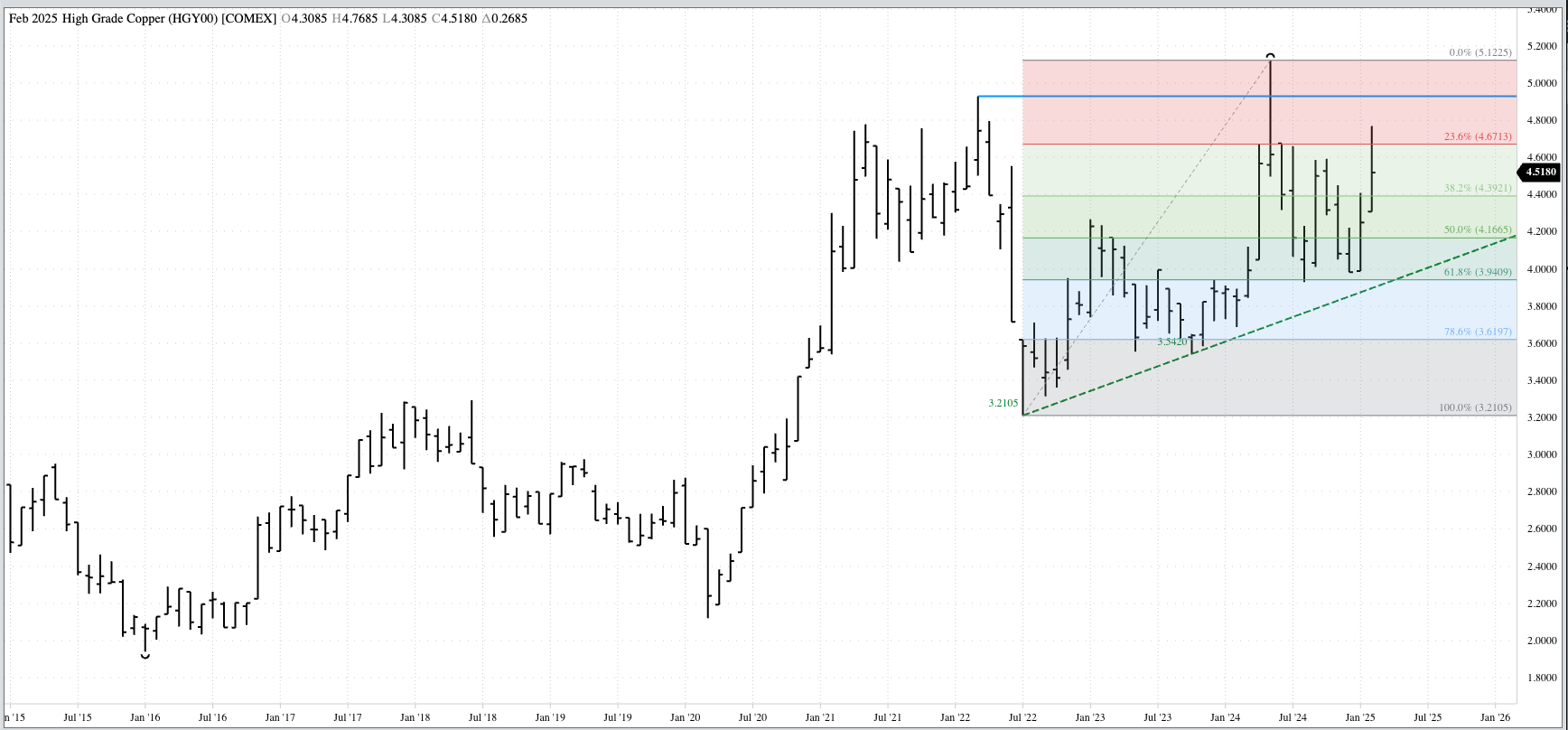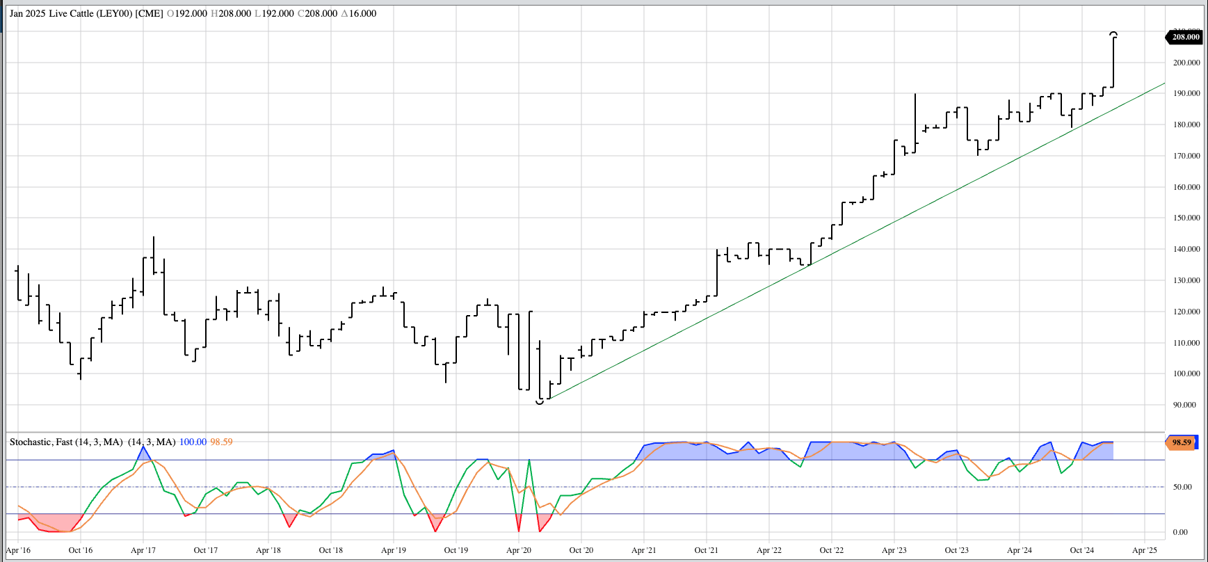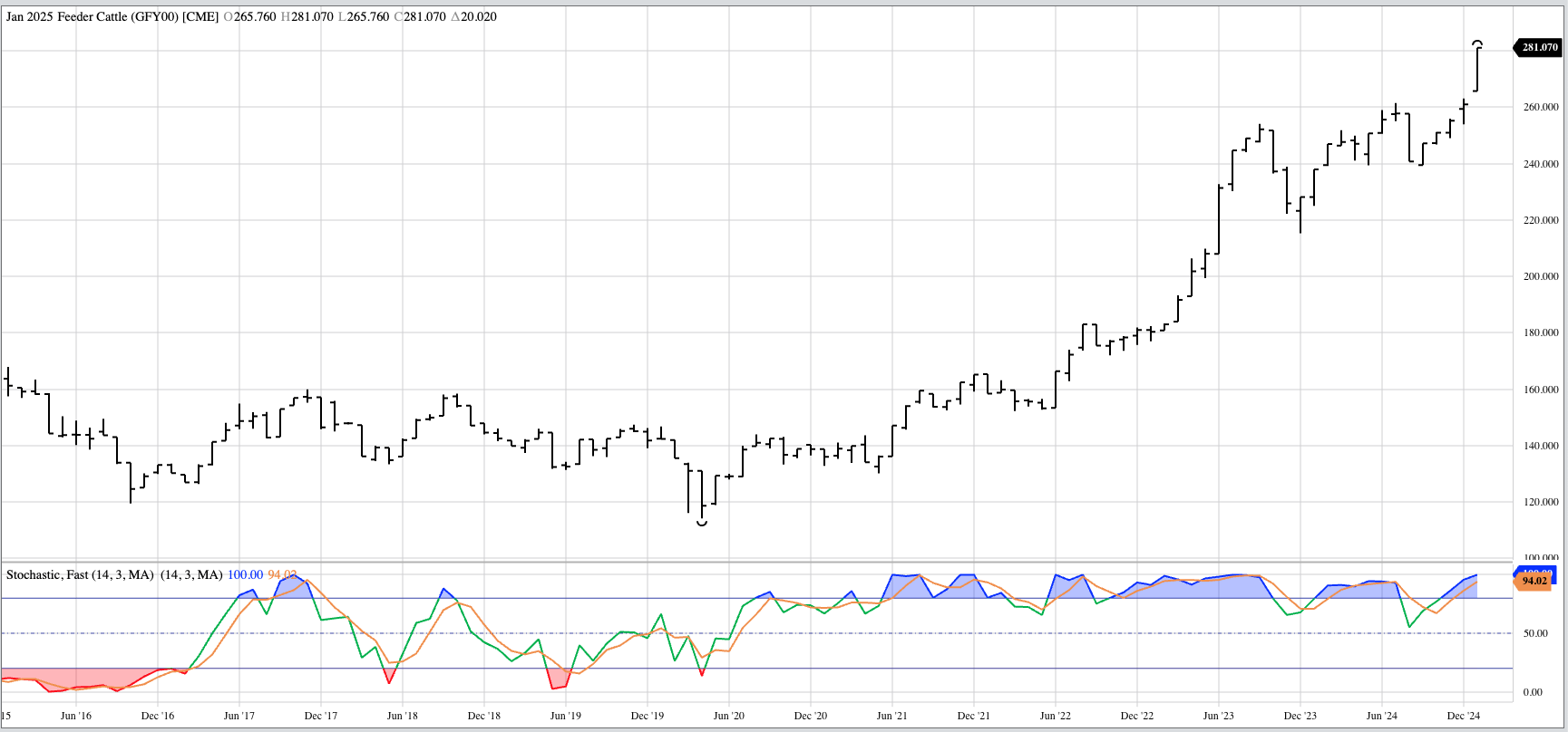 Gold (Cash Index): The cash index (GCY00) extended its major (long-term) uptrend to a new all-time high of $2,815.25 before closing January at $2,799.74, up $193.97 for the month. Given [...]