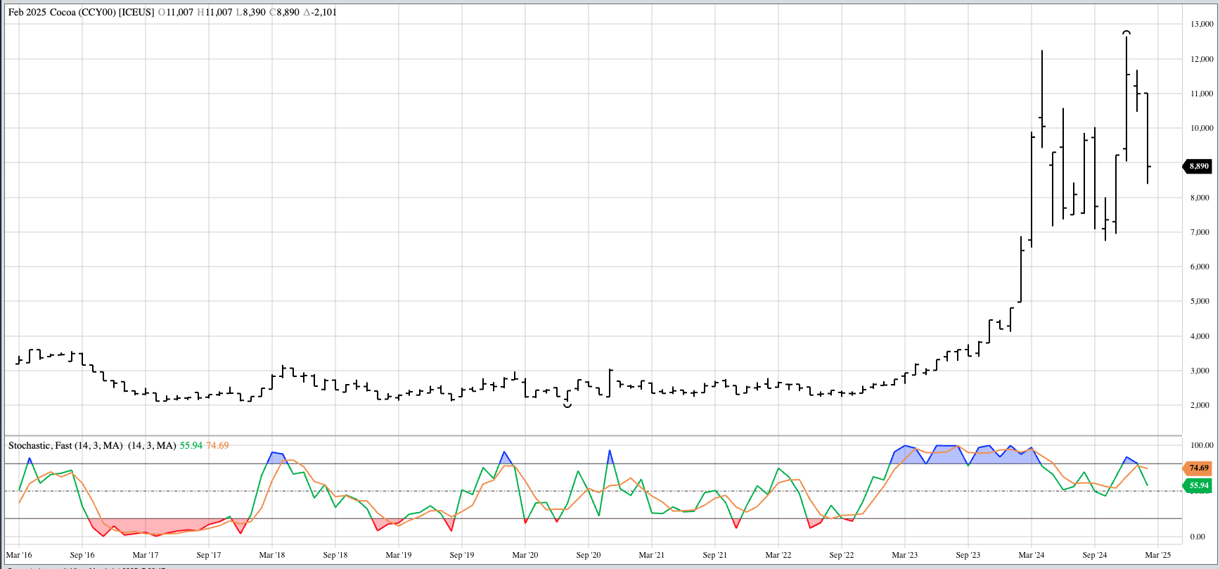 Gold (Cash Index): The cash index (GCY00) extended its major (long-term) uptrend to a new all-time high of $2,955.40 before closing February at $2,858.48, up $58.74 for the month. Given [...]