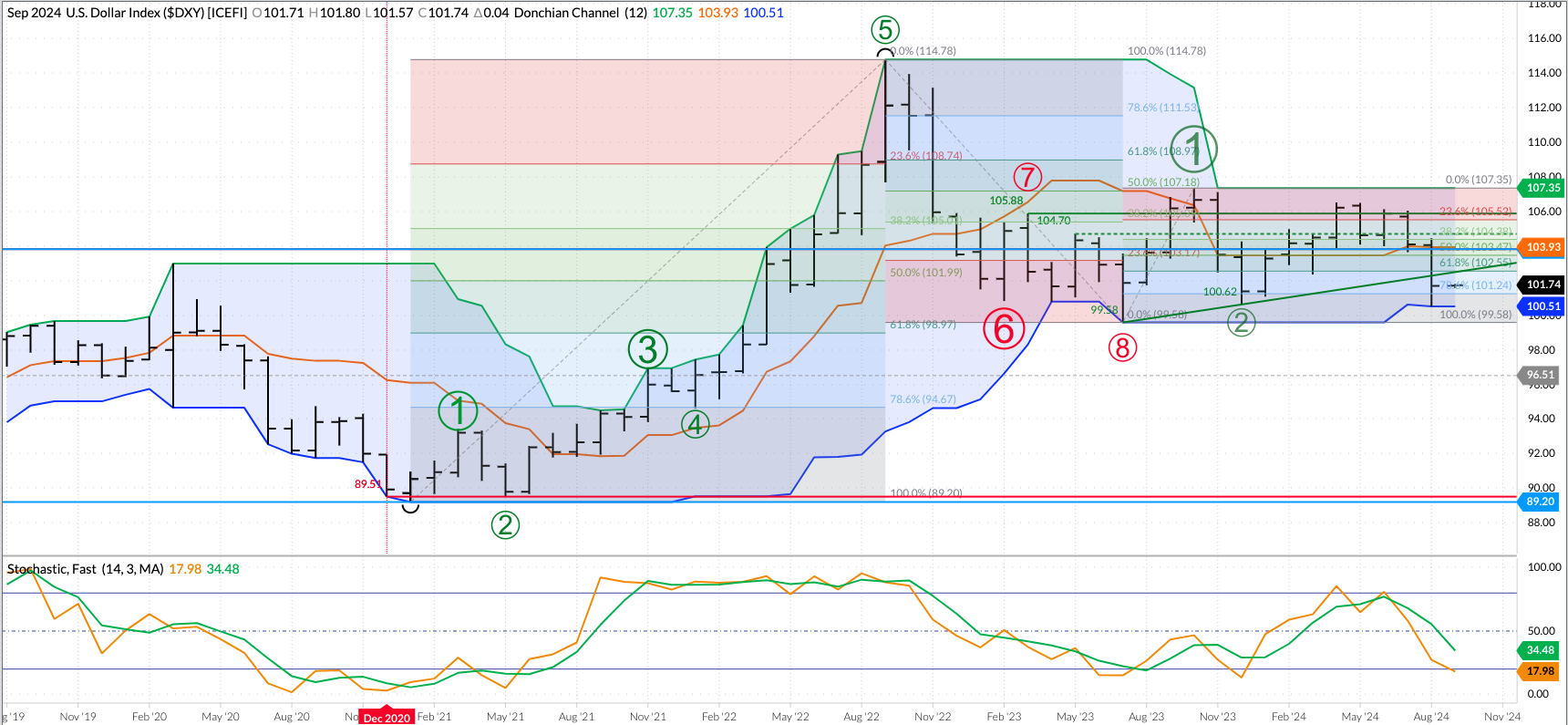 Gold (Cash Index): The cash index (GCY00) extended its major (long-term) uptrend to a high of $2,6,84.45 during August before closing at $2,634.70, up $131.33 for the month. Monthly stochastics [...]