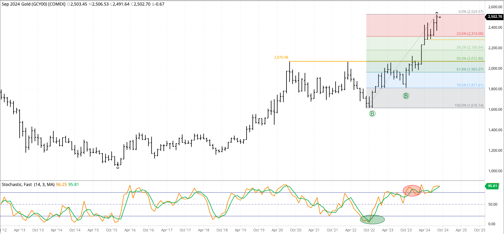 Gold (Cash Index): The cash index (GCY00) extended its major (long-term) uptrend to a high of $2,529.57 during August before closing at $2,503.37, up $56.29 for the month. Monthly stochastics [...]