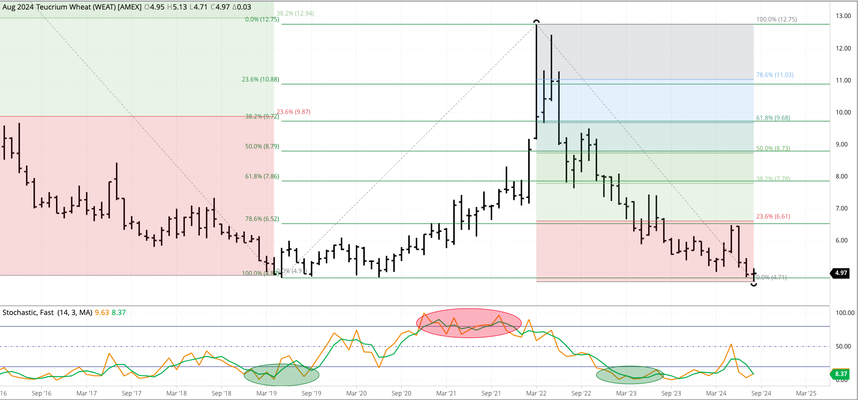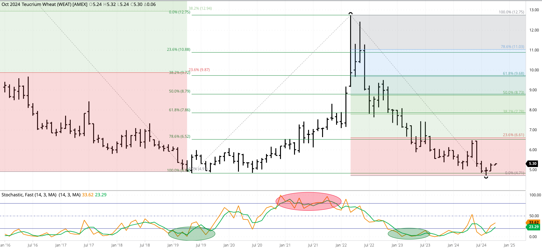 The Teucrium Wheat Fund (WEAT) extended its major (long-term) uptrend to a high of $5.33 during September before closing at $5.24, up $0.27 for the month. Theoretical Positions: Investors went [...]