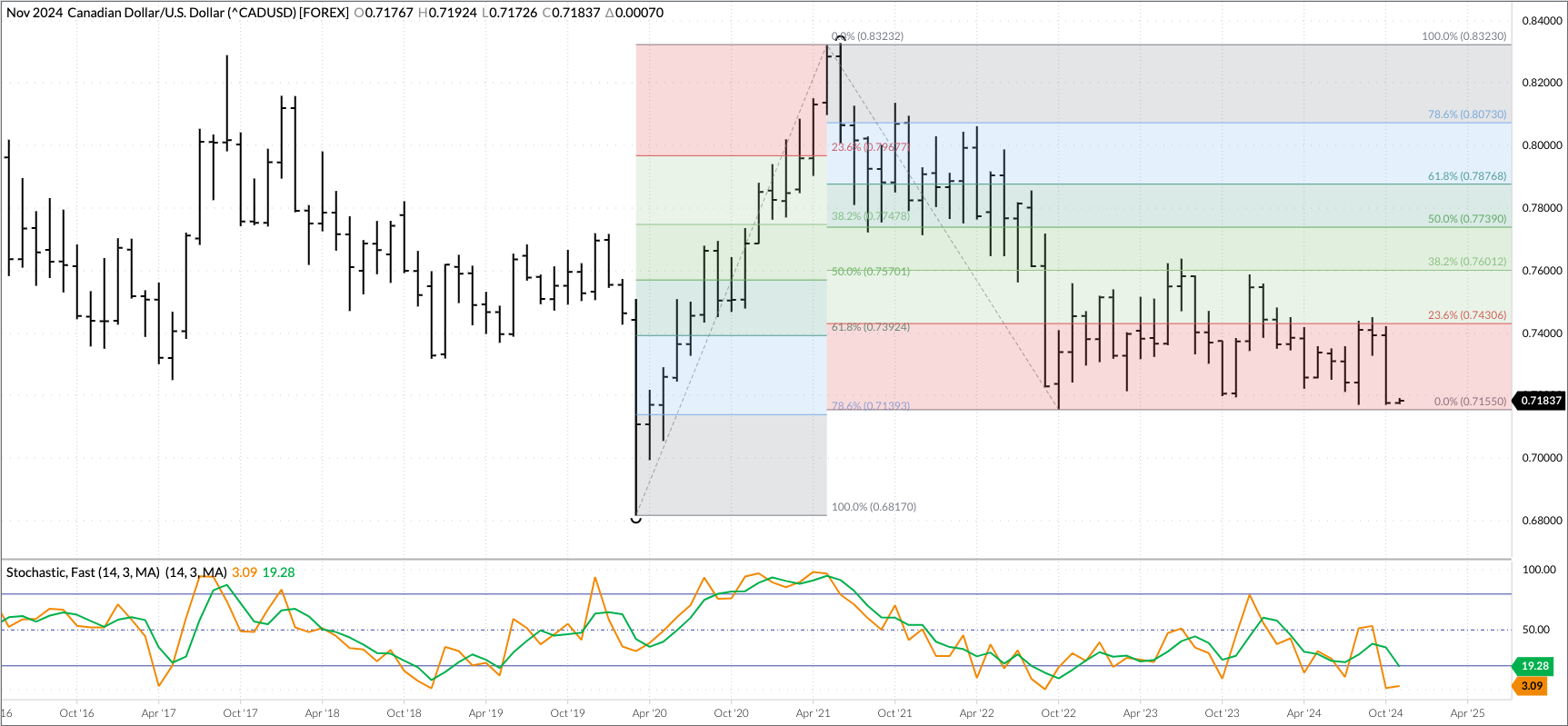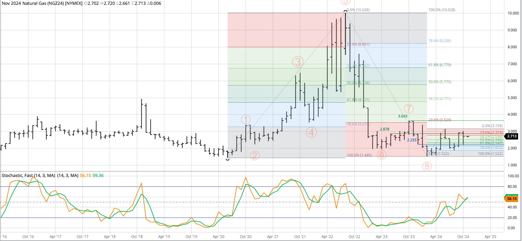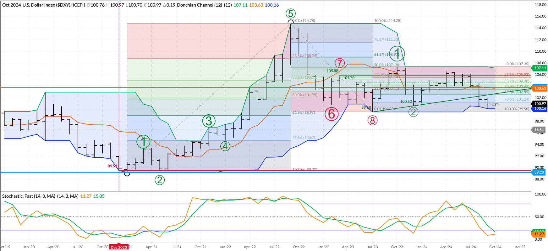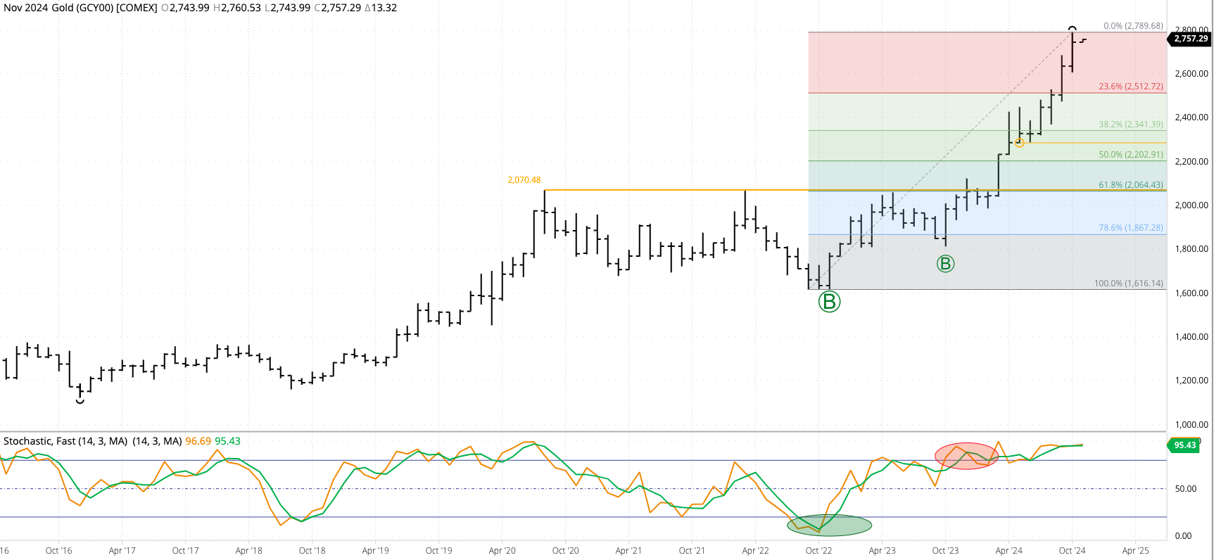 Gold (Cash Index): The cash index (GCY00) extended its major (long-term) uptrend to a high of $2,789.68 during October before closing at $2,743.97, up $109.27 for the month. Monthly stochastics [...]