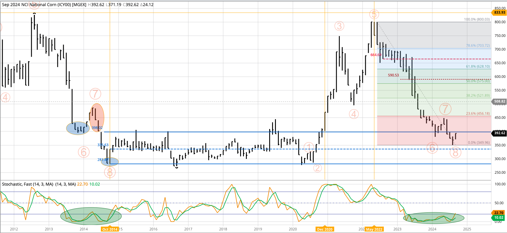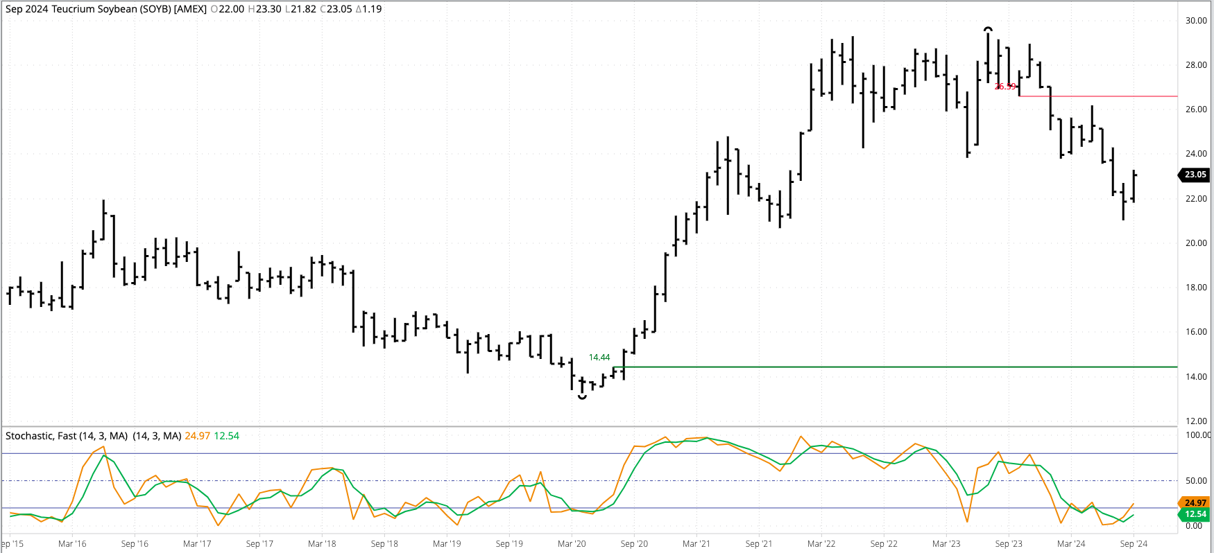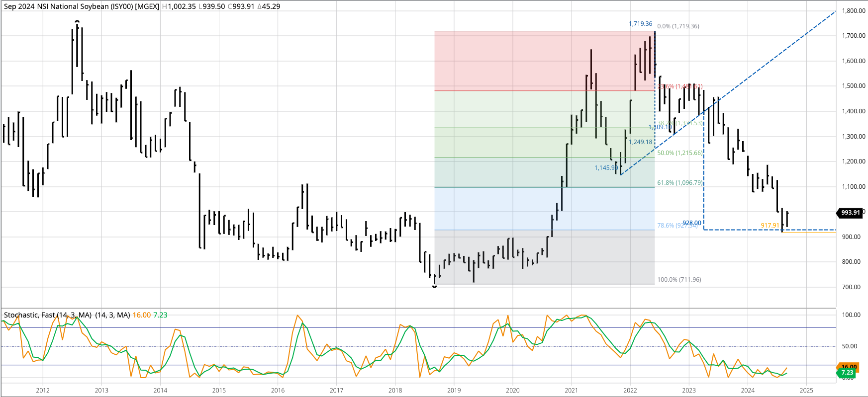 Soybean Cash Index: The National Soybean Index (ISY00) looks to be in a major (long-term), holding above the August low of $9.1791 during September. The argument could be made the [...]