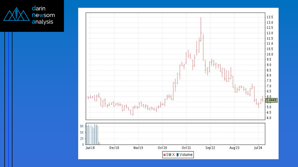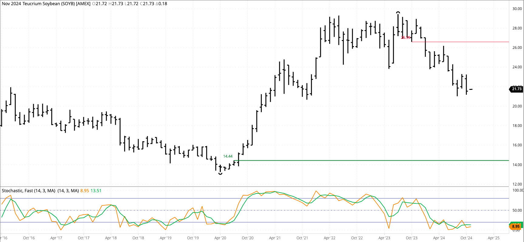 Soybean Cash Index: The National Soybean Index (ISY00) extended its major (long-term) downtrend to a low of $9.0983, taking out the previous mark of $9.1791 (August 2024). Theoretical Positions: Leave existing [...]