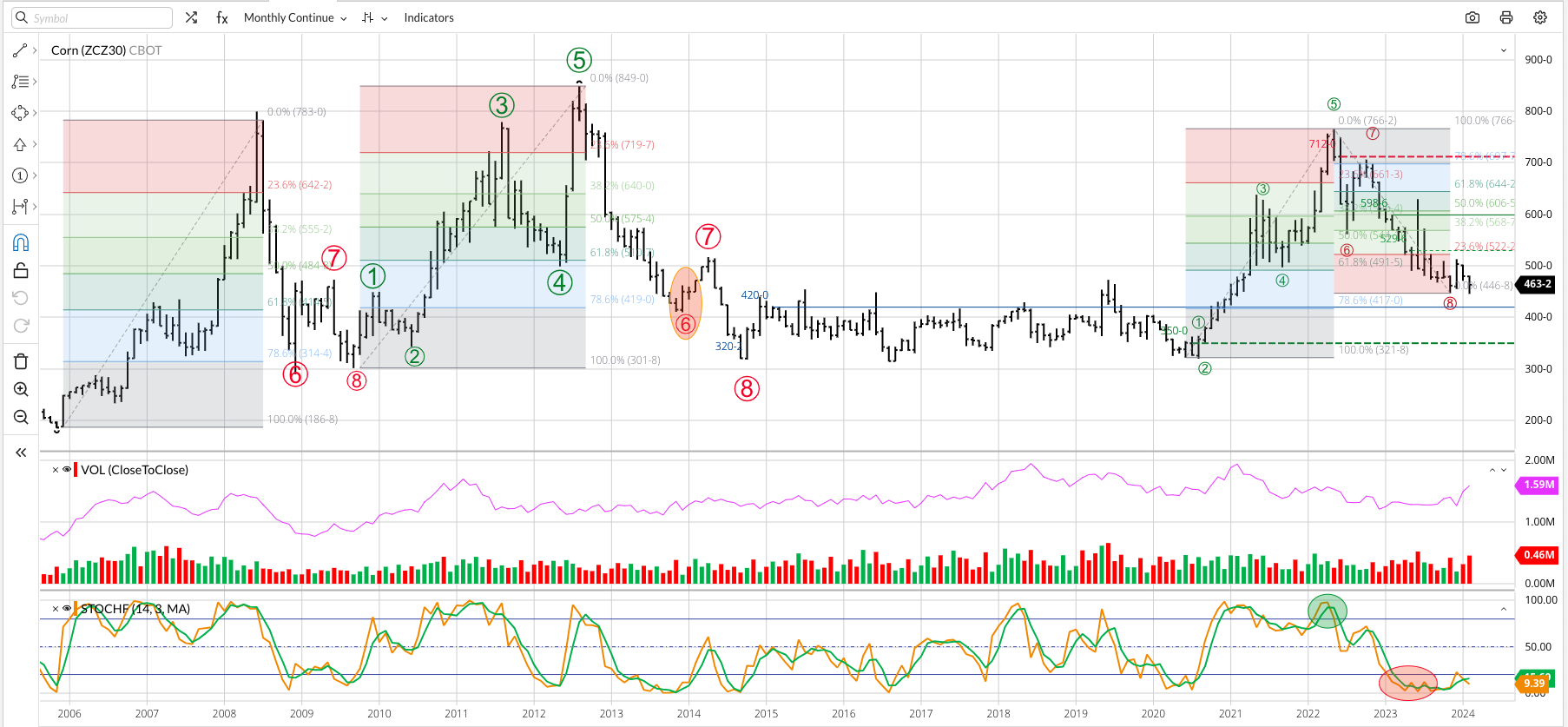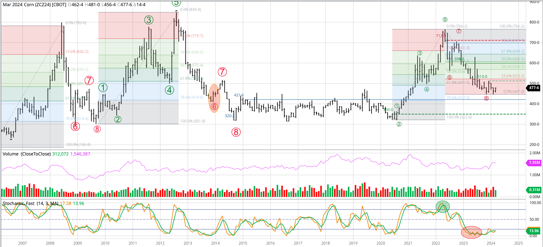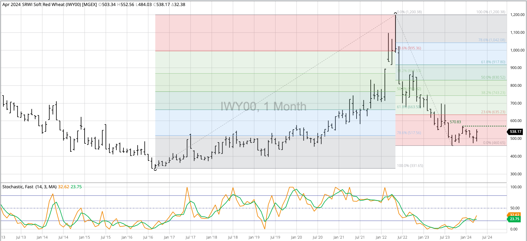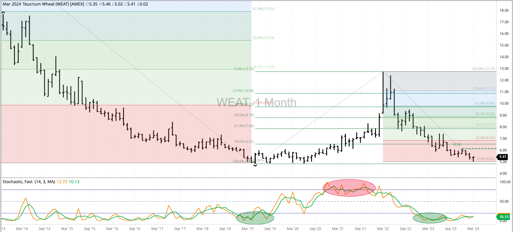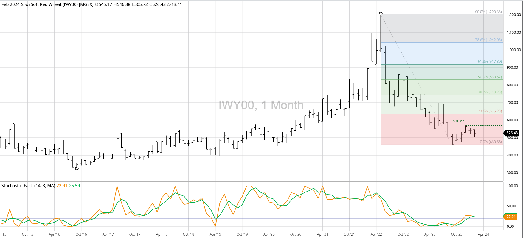 The HRW Wheat Price Index (IHY00, national average cash price) fell to a new low of $5.1286 during February, erasing the bullish spike reversal from November 2023 that included a [...]