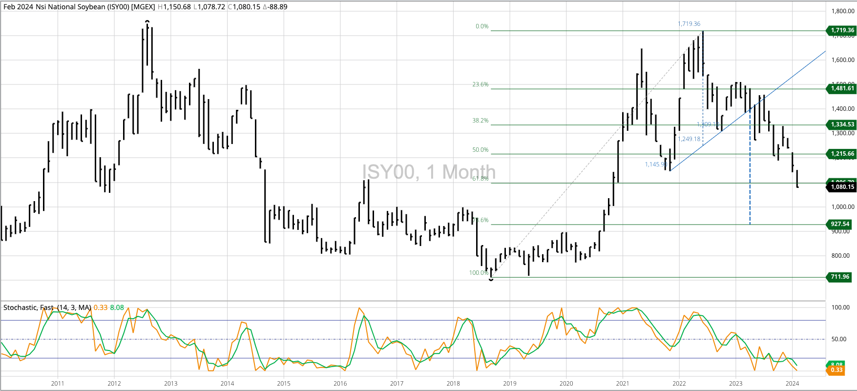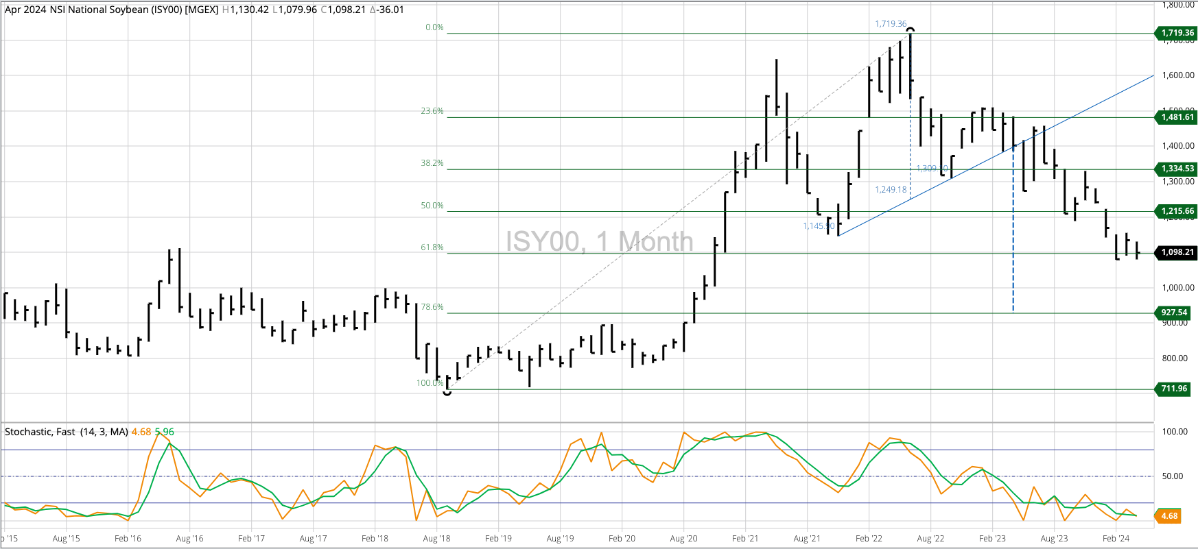 Soybean Cash Index: The Soybean Price Index (ISY00, national average cash price) is a mess. The ISY00 left a price gap on its monthly chart between the December low of [...]