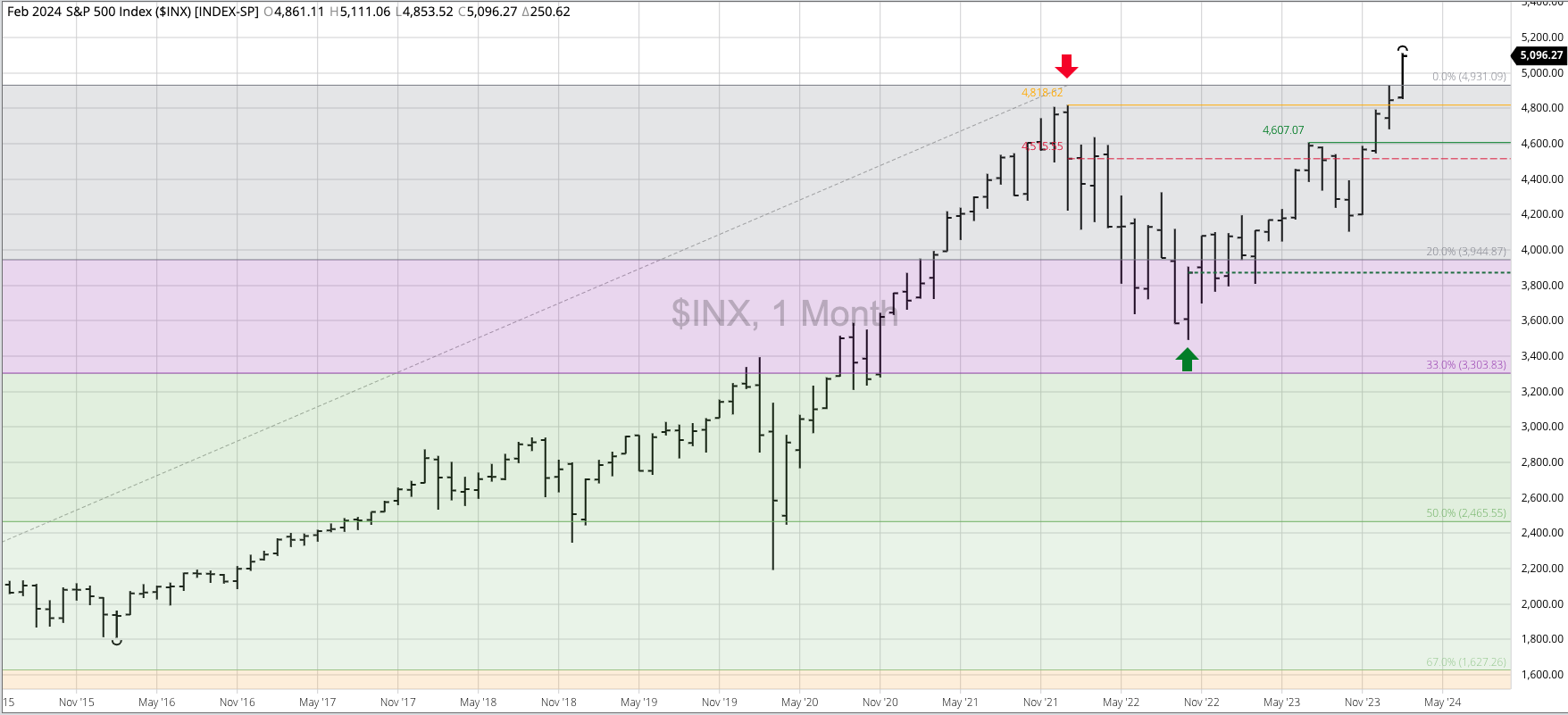The S&P 500 ($INX) remains in a major (long-term) uptrend, posting a new all-time high of 5,111.06 during February before closing at 5,096.27, up 250.62 for the month. Seasonally, the [...]